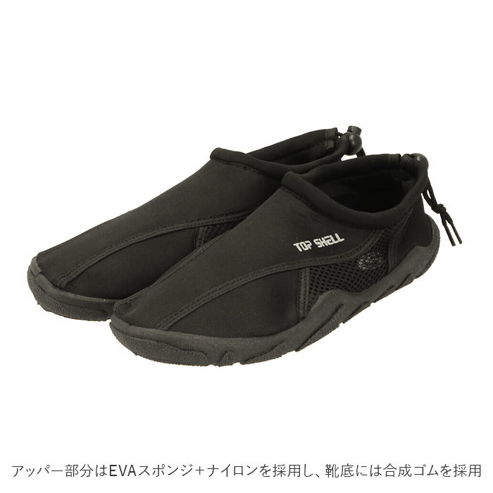 商品説明 | ・川遊び、釣りなど水辺のレジャーシーンにピッタリ。足をガードするビーチシューズが新登場。 ・アッパー部分はEVAスポンジ+ナイロンを採用し、靴底には合成ゴムを採用。 ・軽量な履き心地はもちろん、中敷き入りと柔らかいラバーソールが足裏からの衝撃を軽減。 ・足首は動きやすいショートカットタイプ。コードストッパーで足首の締め付け感を調節可能できるから水の中でも脱げにくく安心。 ・サイズはSから3Lまで幅広く展開。シンプルなデザインでユニセックスで履けるのも魅力的◎ |