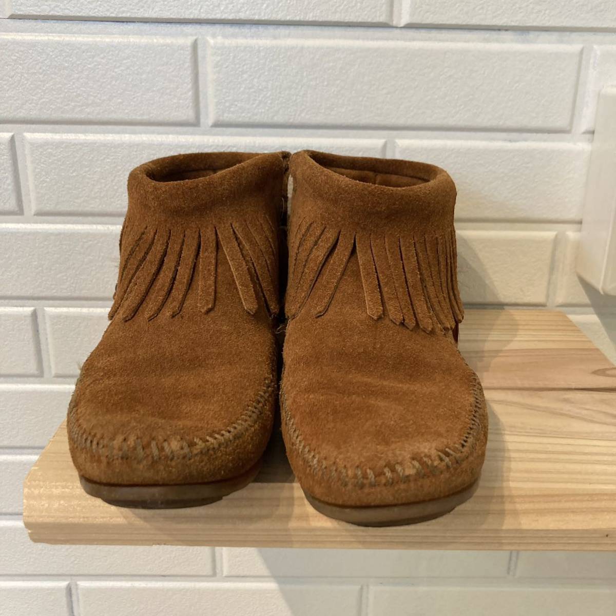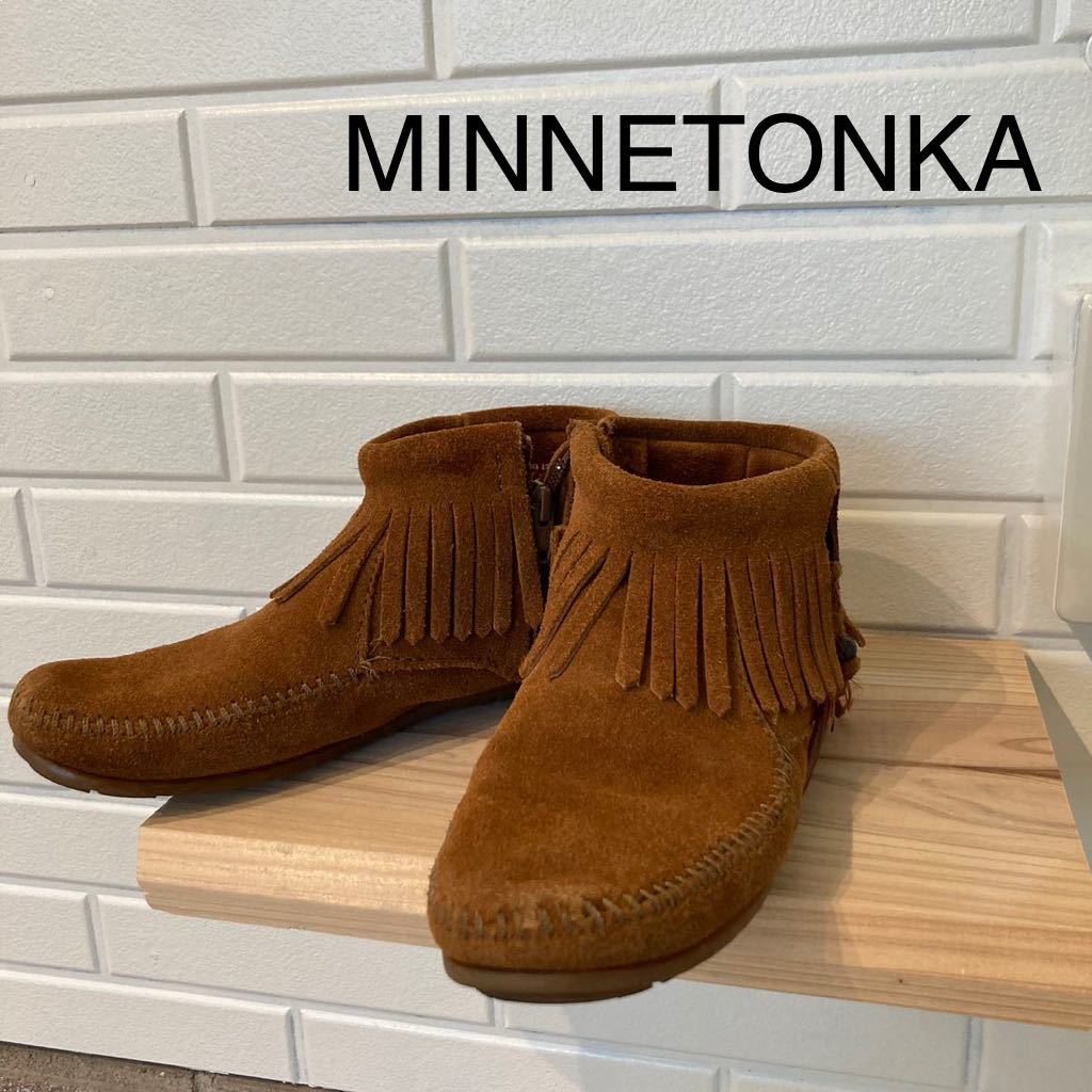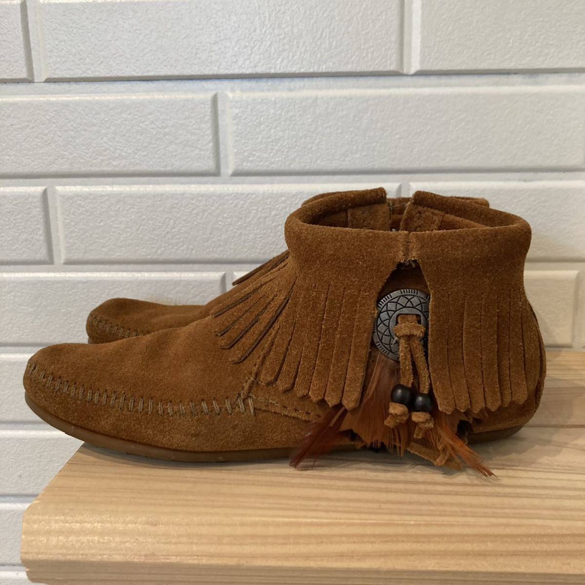 MINNETONKA ミネトンカ ショートブーツ スエード アンクル丈 フリンジ サイドジップ レザー レディース サイズ5.5 (22.5) 玉mc2046