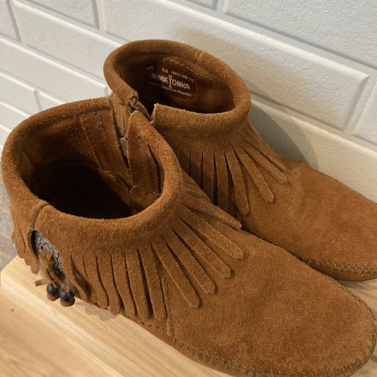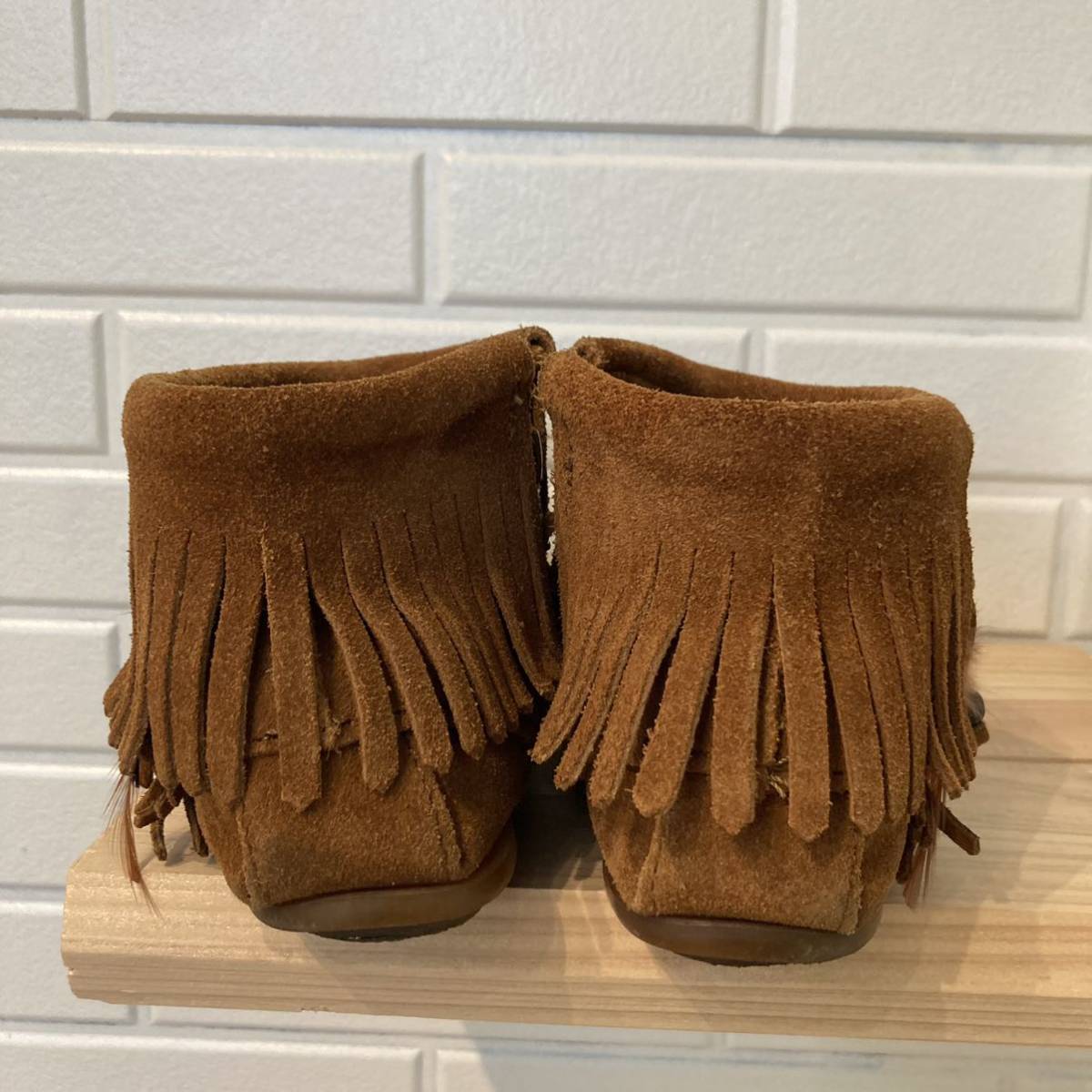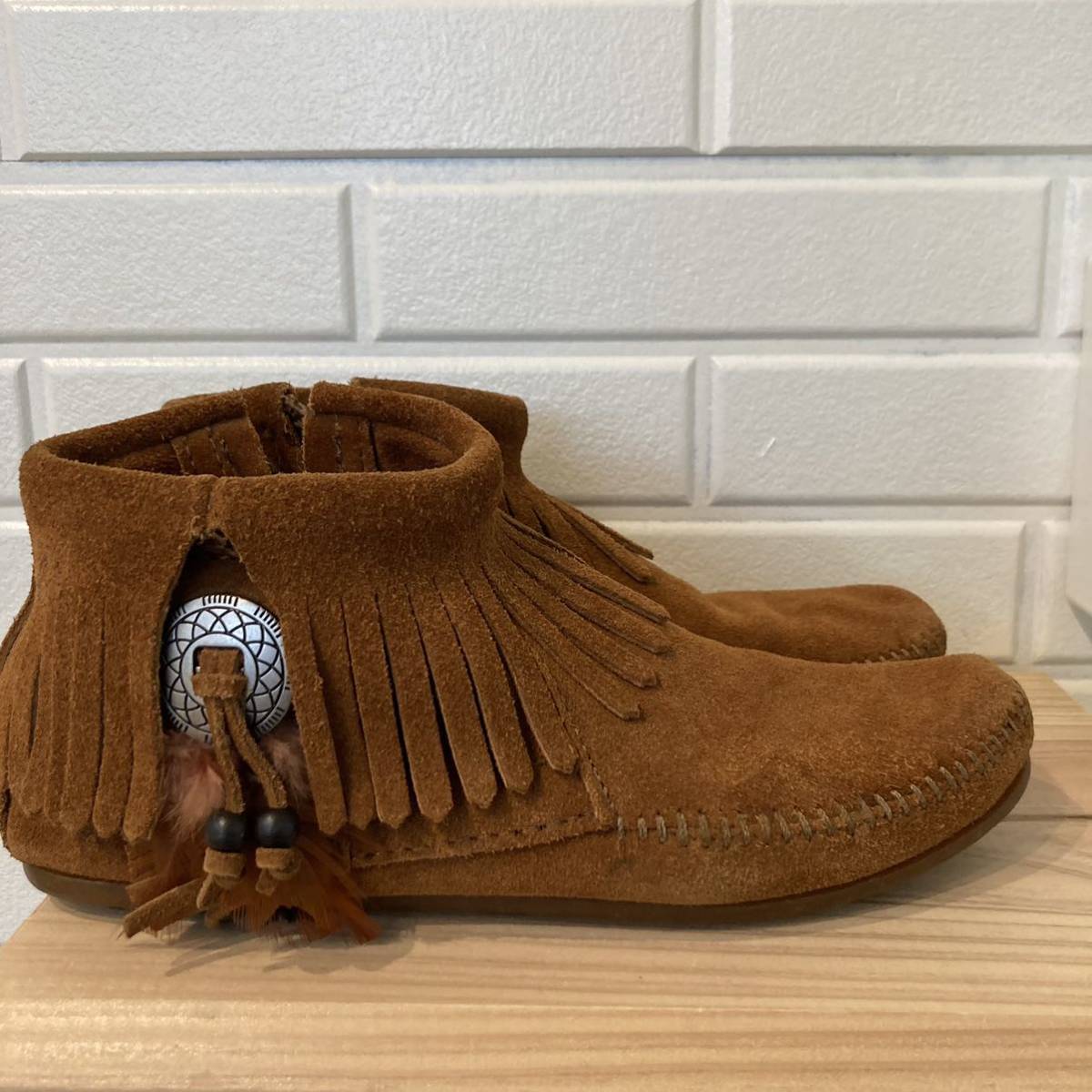MINNETONKA ミネトンカ ショートブーツ スエード アンクル丈 フリンジ サイドジップ レザー レディース サイズ5.5 (22.5) 玉mc2046