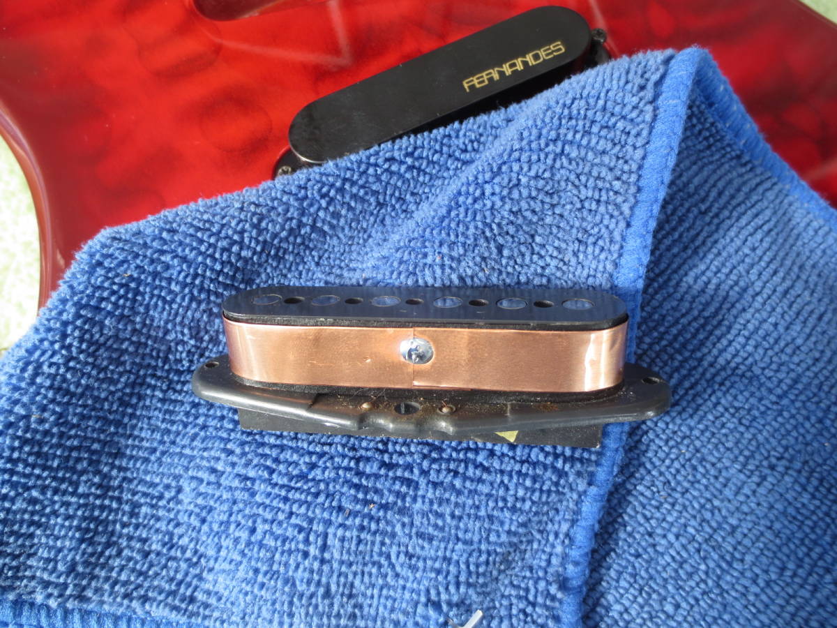 DS-5×2(シングルコイルPU)には銅テープによるシールド(ノイズ対策)を追加。