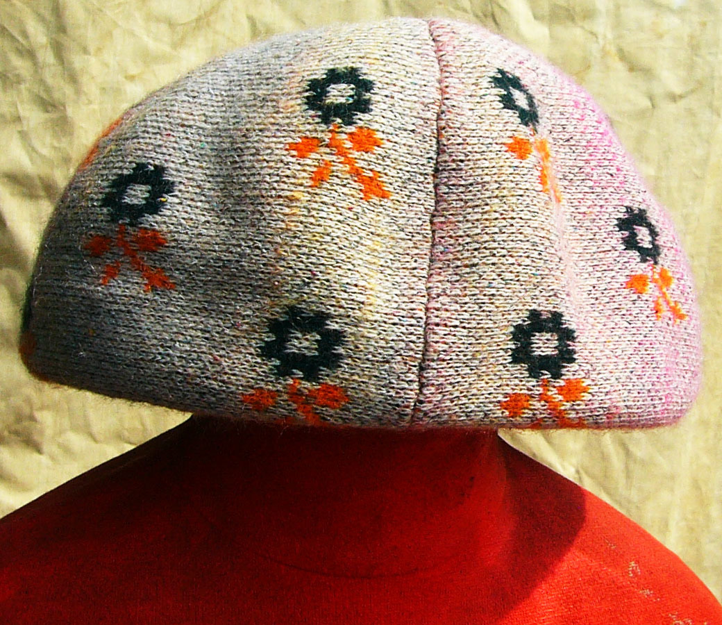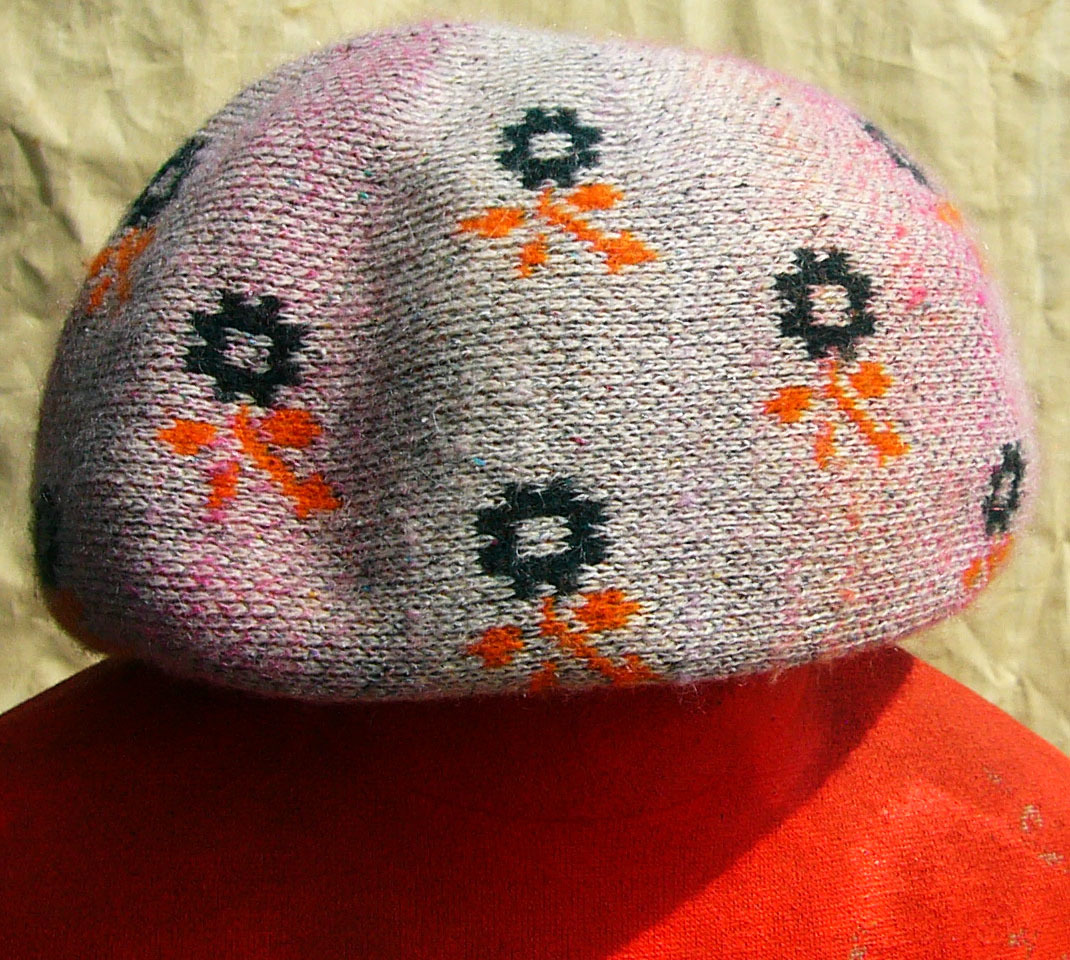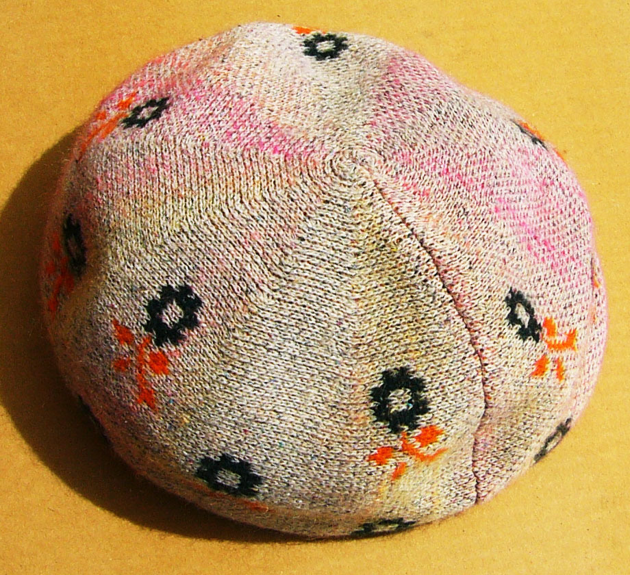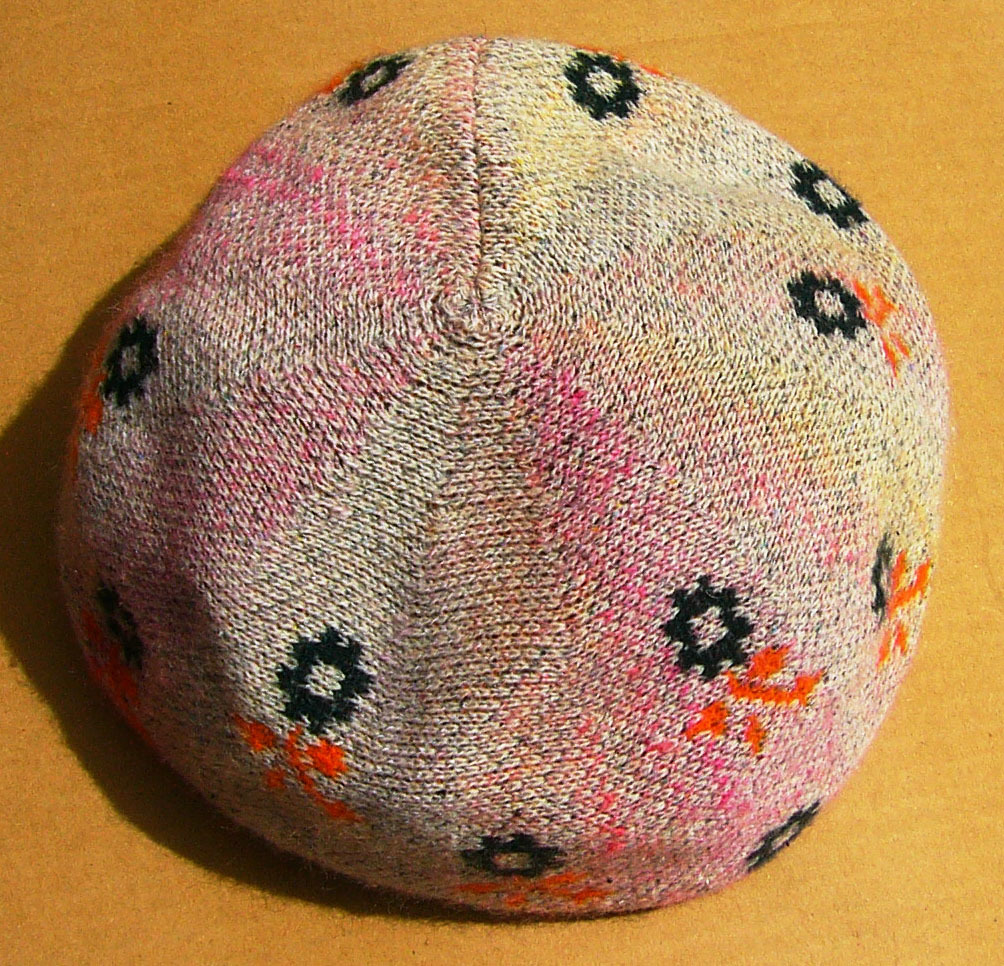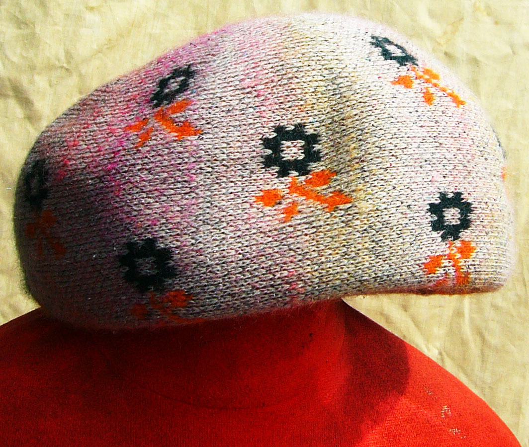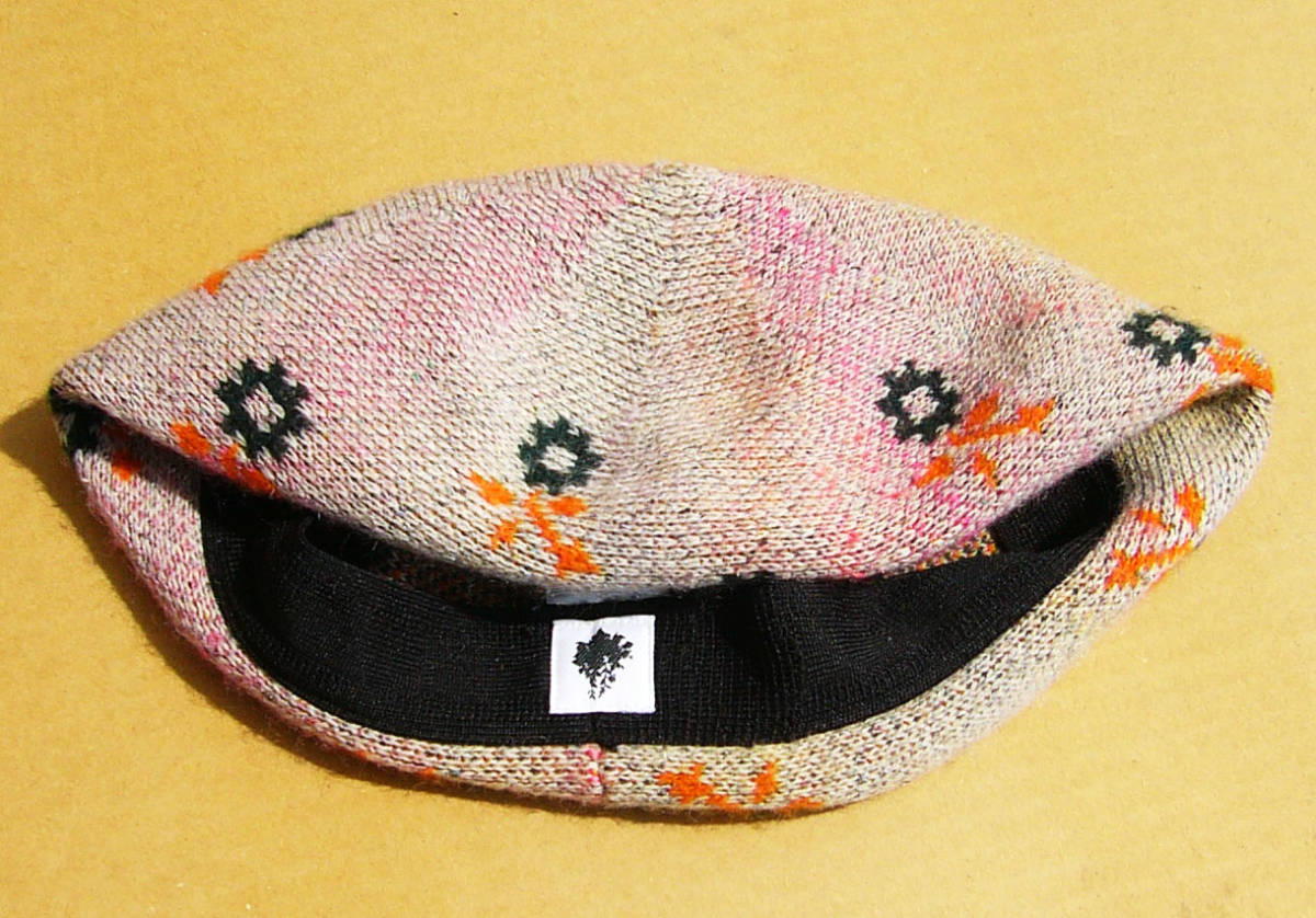 ベースの色は薄めの無彩色グレーで、そこにピンク系の色をアトランダムに入れ、オレンジや黒などの柄