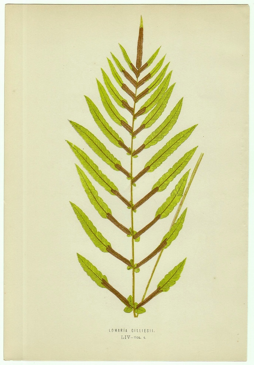 1859年 Lowe 英国のシダ植物 多色刷木版 Vol.4 Pl.54 シシガシラ科 パラブレクヌム属 Lomaria gilliesii