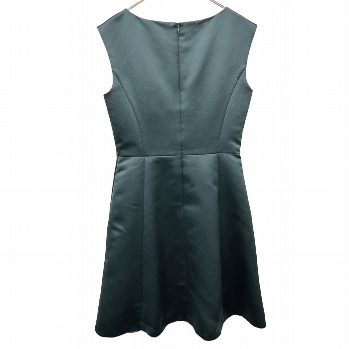 | 商品タイトル | ストロベリーフィールズ STRAWBERRY-FIELDS ノースリーブワンピース 無地 裏地付き フレア ポリ100% グリーン 緑(裏地:青系) レディース |