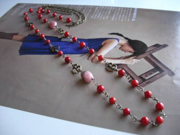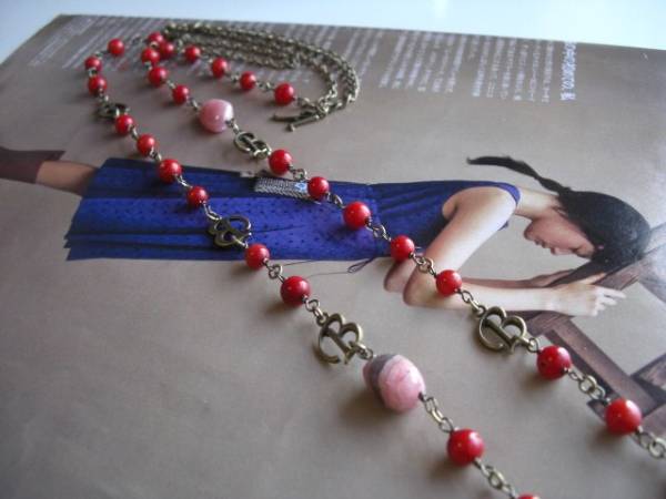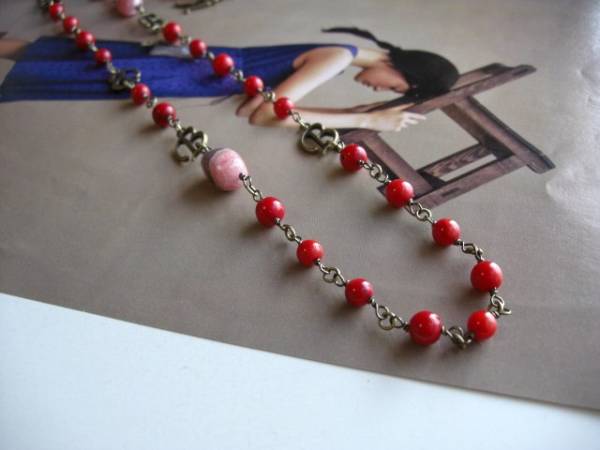 物語をアートして・・シリーズです♪オリエンタル刺繍・・シックな珊瑚とインカローズのネックレスです!深い赤の珊瑚と繊細な模様のインカローズに英字チャームを合わせてキュートな表情です♪珊瑚は6ミリ、8ミリの丸玉、インカローズは13ミリ位のラフタンブルです♪長さは全長105センチ位で調節自由です♪2連にされても素敵です♪お揃いのブレスレットも出品しています♪ハンドメイドをご理解頂いてノークレーム、ノーリターンでお願いします