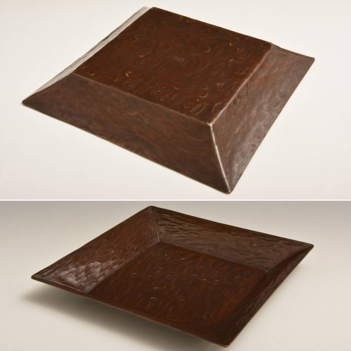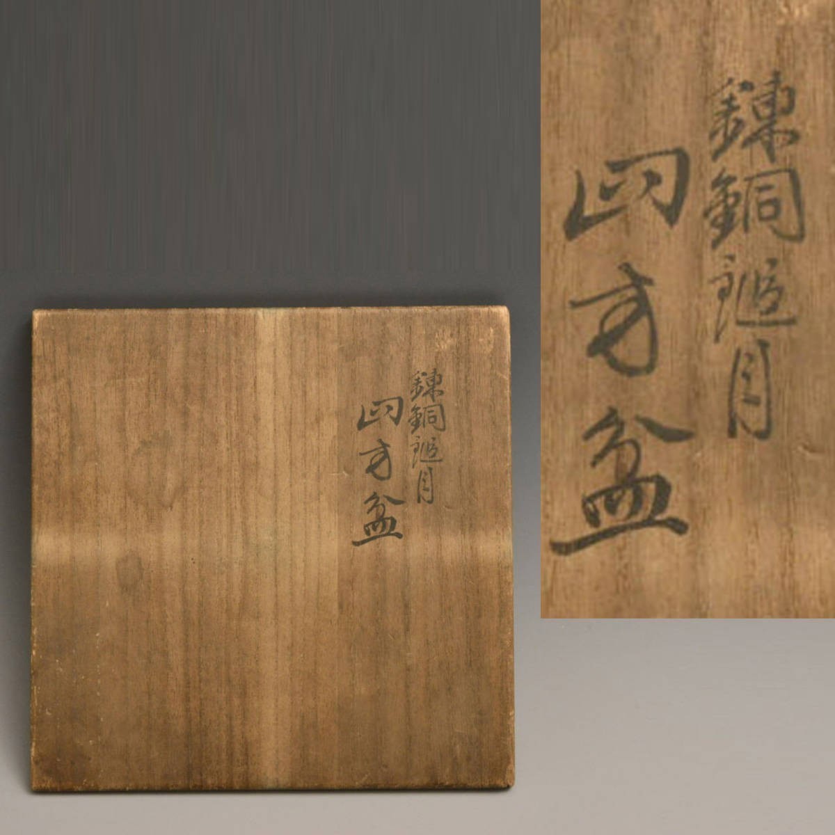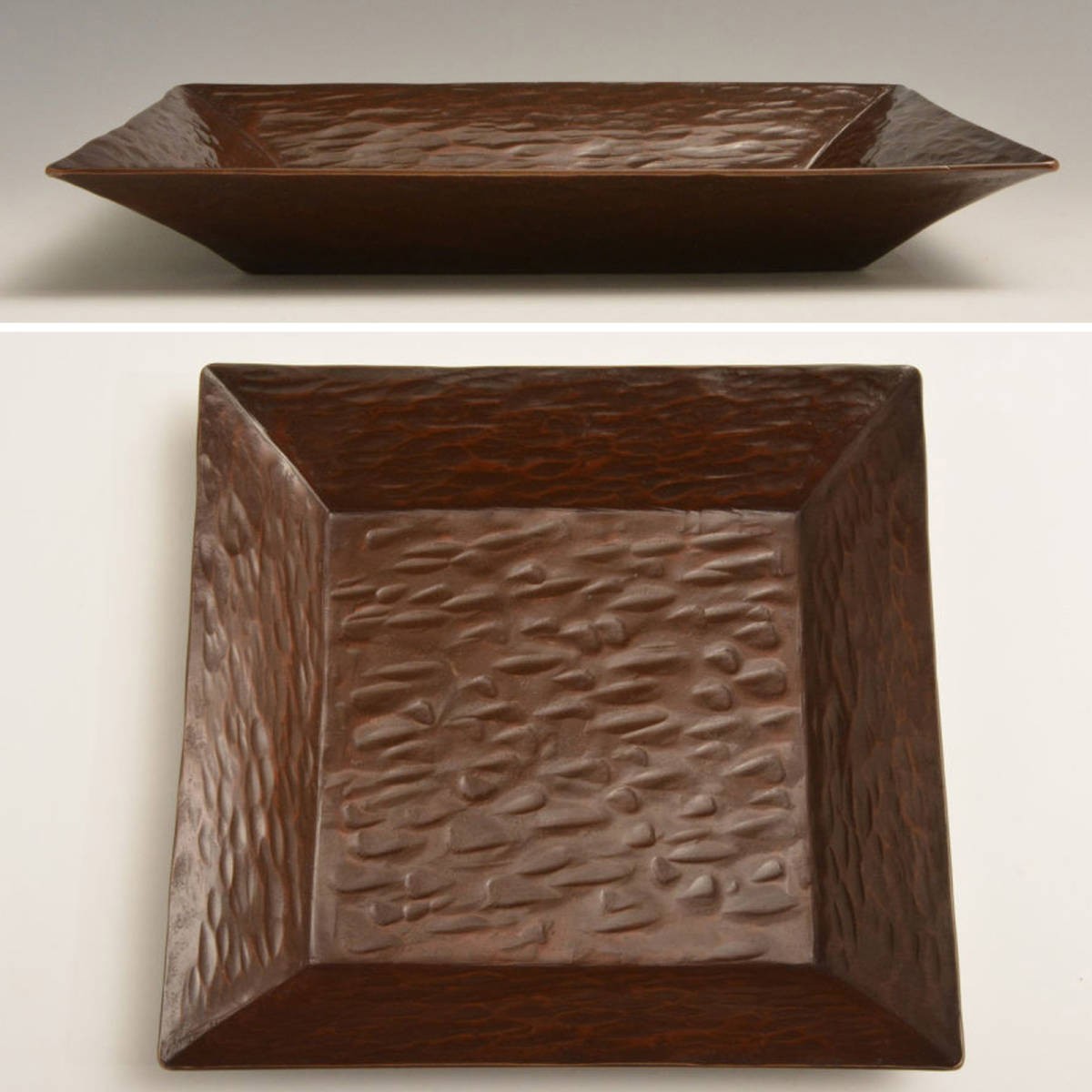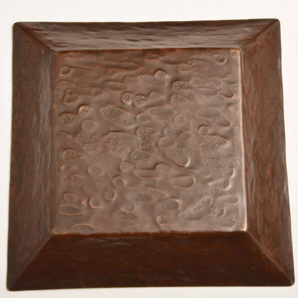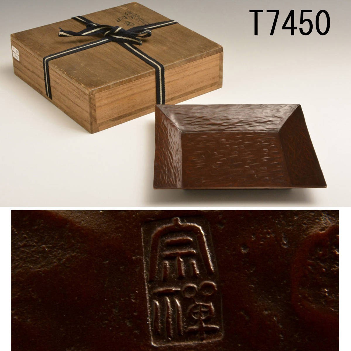 T07450 宗禅 錬銅鎚目四方盆:真作