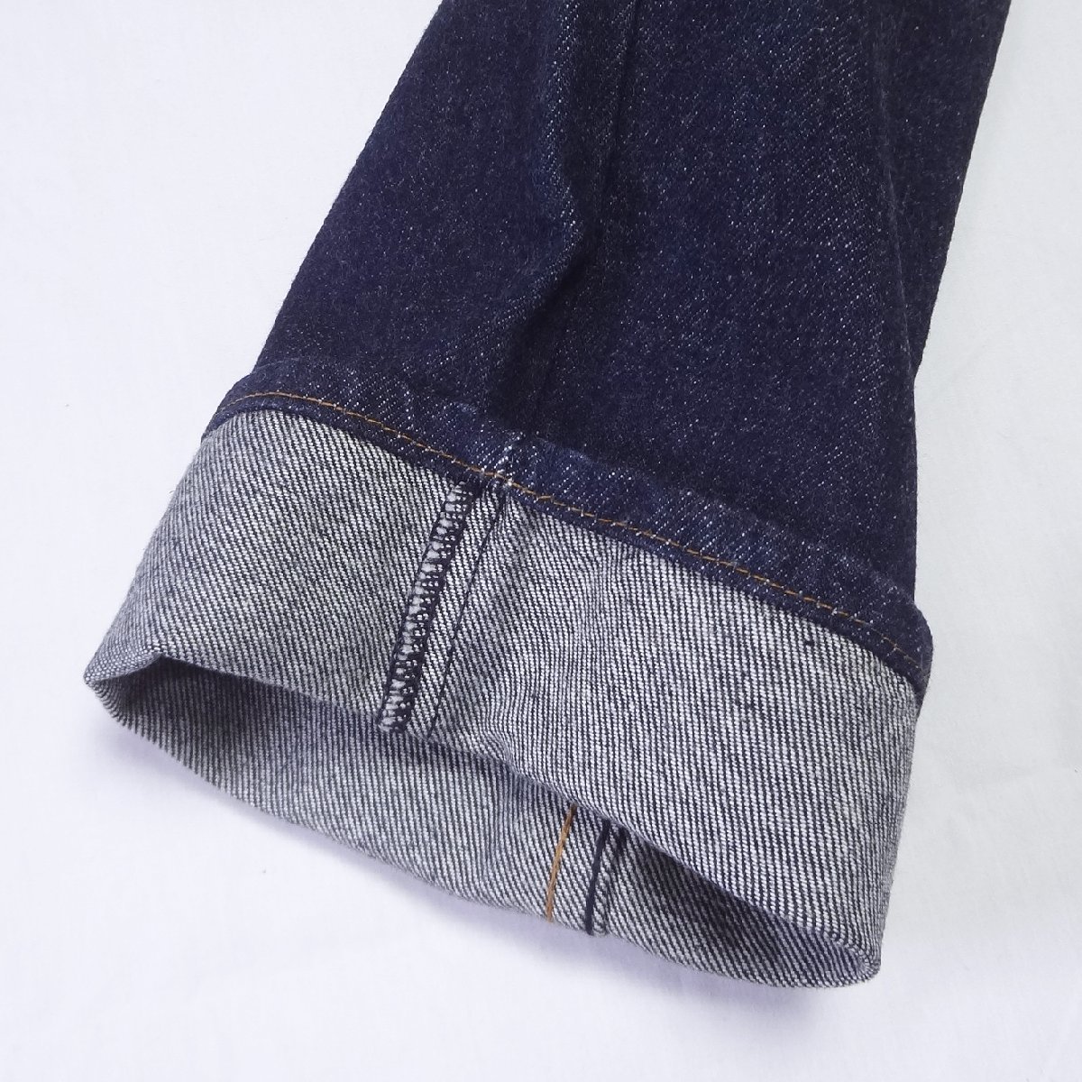 ・スモールeレッドタブ、ペーパーパッチ、ジッパーフライ、アーキュエットステッチ、5ポケットリベット