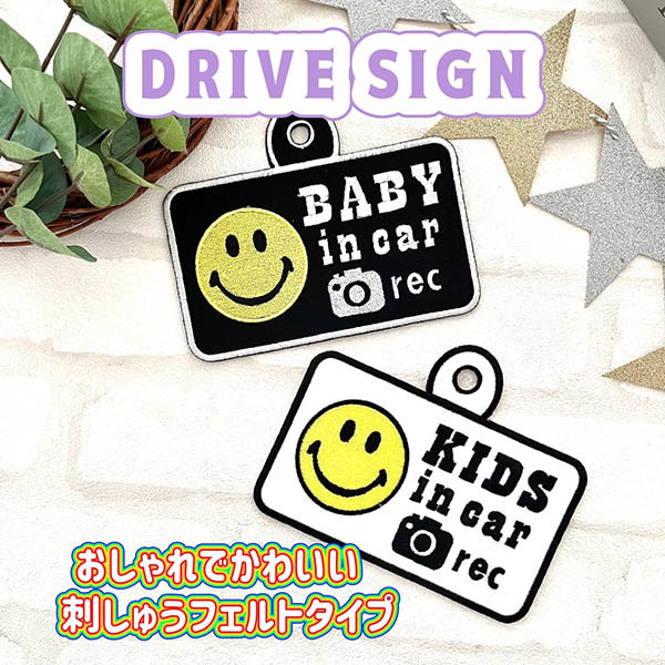 シンプルでおしゃれな刺しゅうフェルトタイプのドライブサイン♪