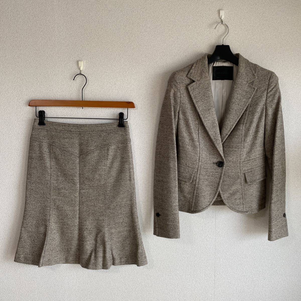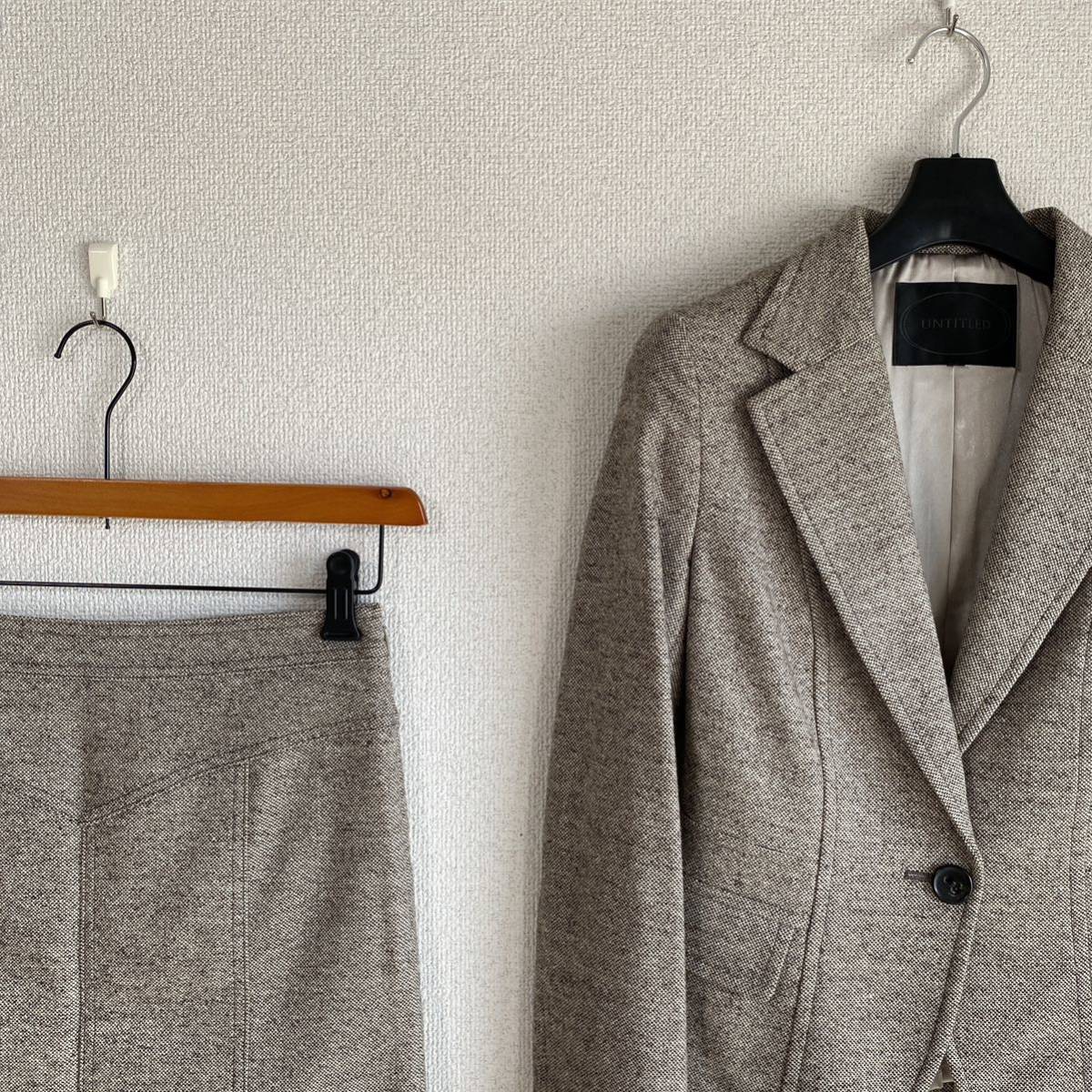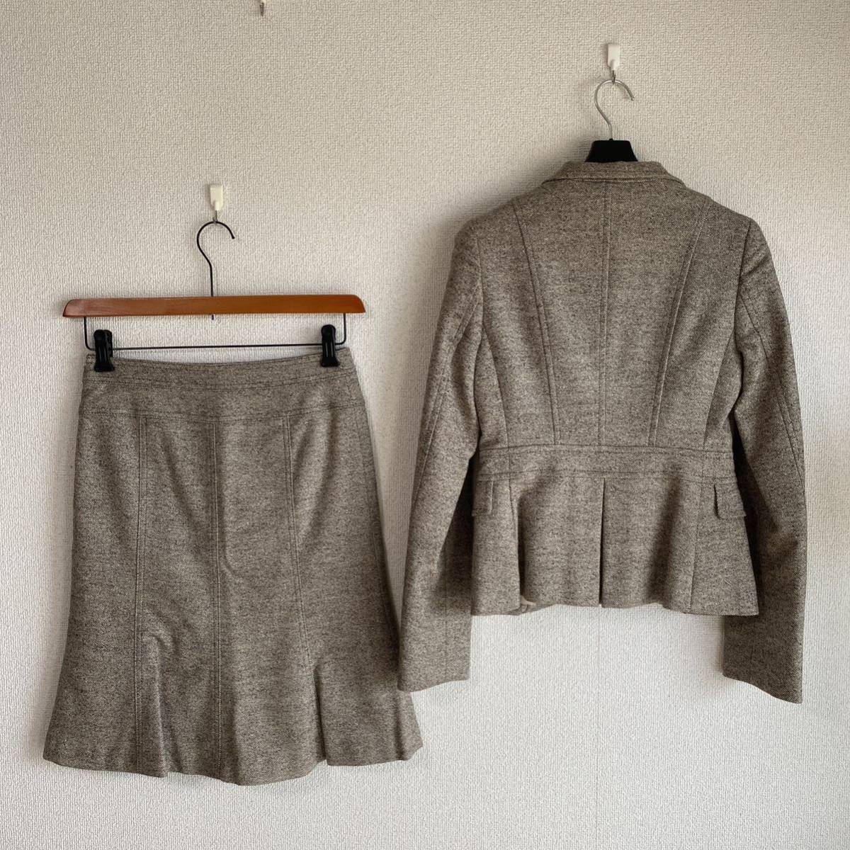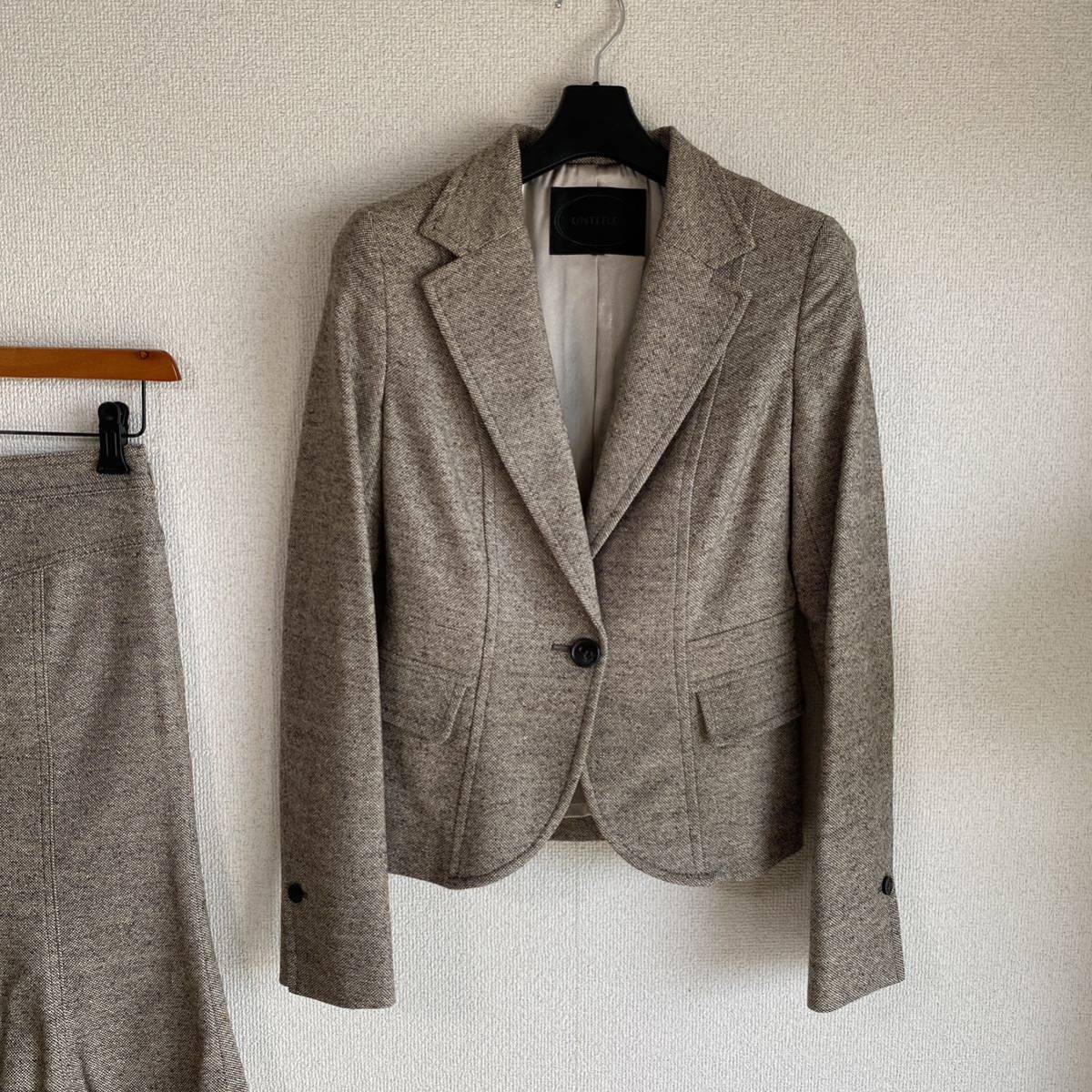 ご覧いただきありがとうございます。染み、汚れ、ほつれのない、【新品同様】の、自信を持ってお勧めできる、良いお品を提供致しております。【極美】アンタイトル カシミヤ混 シルク混 ブラウン系 スーツ 1 W68 秋冬 DMW でございます。アンタイトルの【新品】セットアップをお買い上げ予定の方にお勧めできる、極【美品】、カシミヤ、シルク(絹)混素材の、秋冬シーズンにベストな上質スーツです。上品で、清楚な雰囲気で着こなせます。面接、ビジネス、学校行事にお勧めです。お色は画像でご確認下さい。画像に良くお色が出ています。ブラウン系です。総裏仕立て。フロントにボタンが1つ付いています。袖口は、ボタンが1つ付いていて、折り返して着ることもできるタイプです。ジャケット、外ポケット×2。内ポケット×0。ノーベント。スカート、左サイドファスナー、ポケット×0。スリットなし。脇染み、汚れ、ほつれのない【極美】、とてもきれいなスカートスーツです。 ほぼ【新品】の、襟周り、袖口などに、擦れや汚れのないお品です。とても綺麗なセットアップです。【日本製】