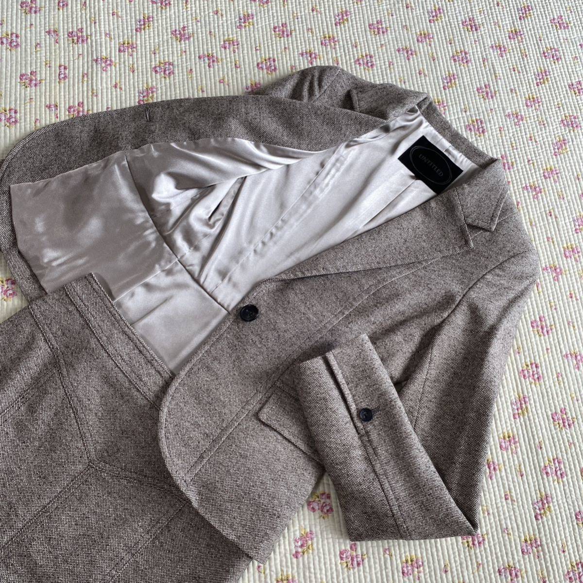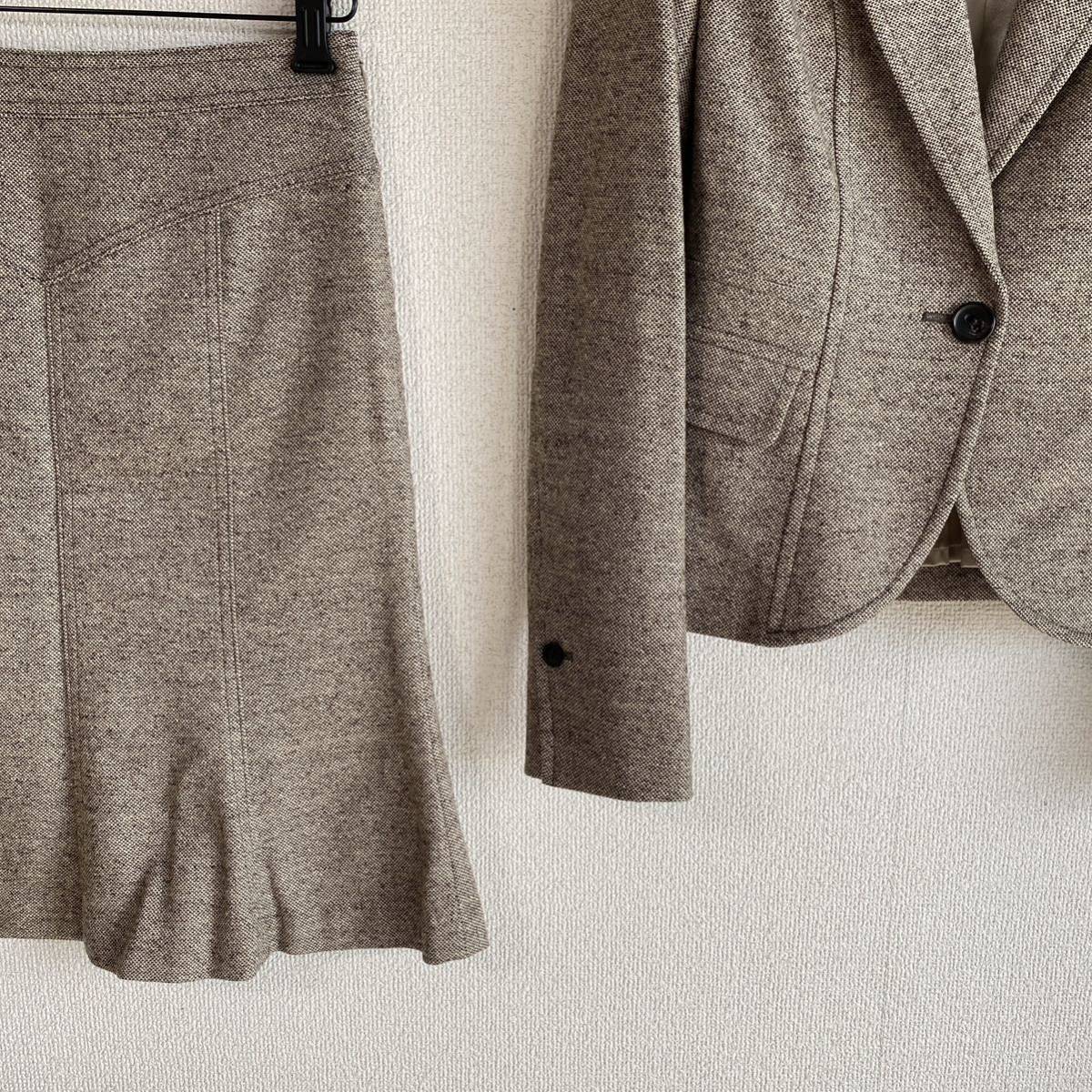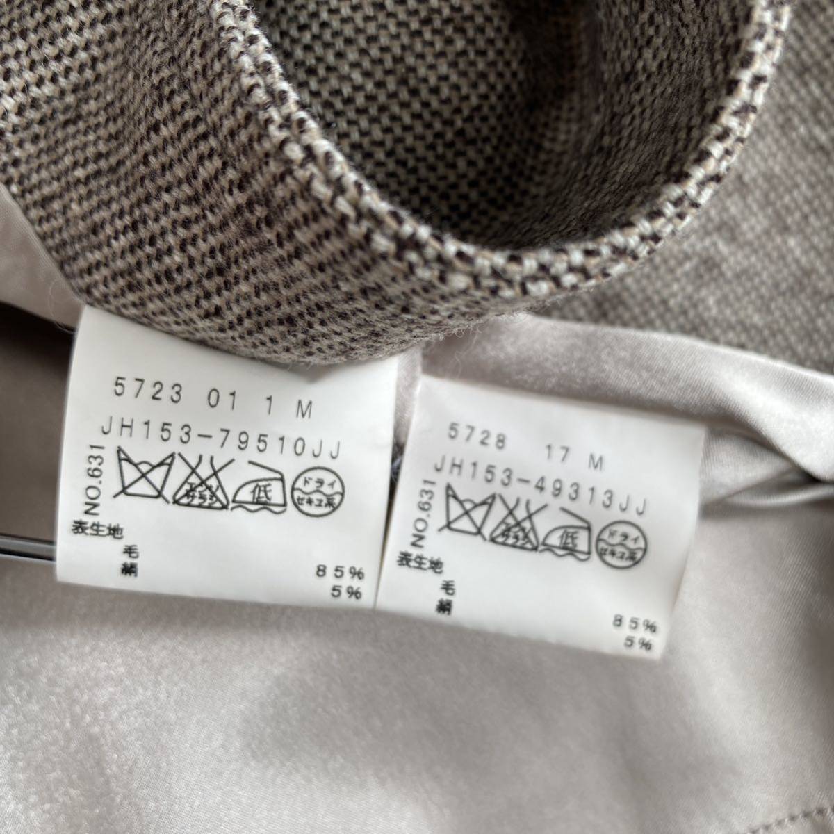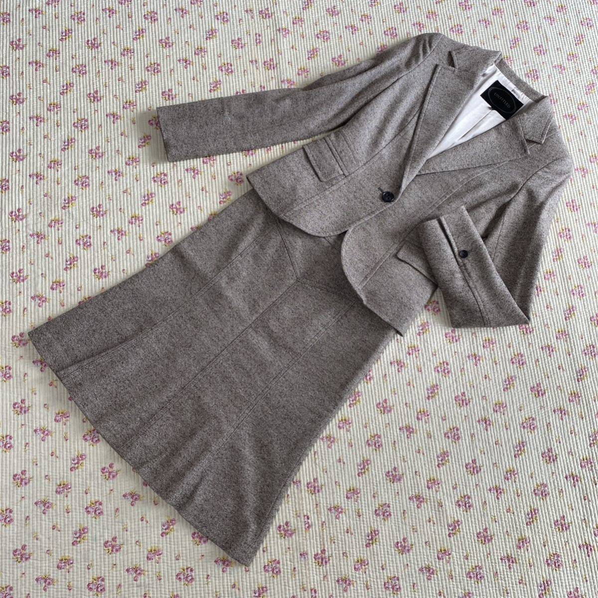 ご覧いただきありがとうございます。染み、汚れ、ほつれのない、【新品同様】の、自信を持ってお勧めできる、良いお品を提供致しております。【極美】アンタイトル カシミヤ混 シルク混 ブラウン系 スーツ 1 W68 秋冬 DMW でございます。アンタイトルの【新品】セットアップをお買い上げ予定の方にお勧めできる、極【美品】、カシミヤ、シルク(絹)混素材の、秋冬シーズンにベストな上質スーツです。上品で、清楚な雰囲気で着こなせます。面接、ビジネス、学校行事にお勧めです。お色は画像でご確認下さい。画像に良くお色が出ています。ブラウン系です。総裏仕立て。フロントにボタンが1つ付いています。袖口は、ボタンが1つ付いていて、折り返して着ることもできるタイプです。ジャケット、外ポケット×2。内ポケット×0。ノーベント。スカート、左サイドファスナー、ポケット×0。スリットなし。脇染み、汚れ、ほつれのない【極美】、とてもきれいなスカートスーツです。 ほぼ【新品】の、襟周り、袖口などに、擦れや汚れのないお品です。とても綺麗なセットアップです。【日本製】