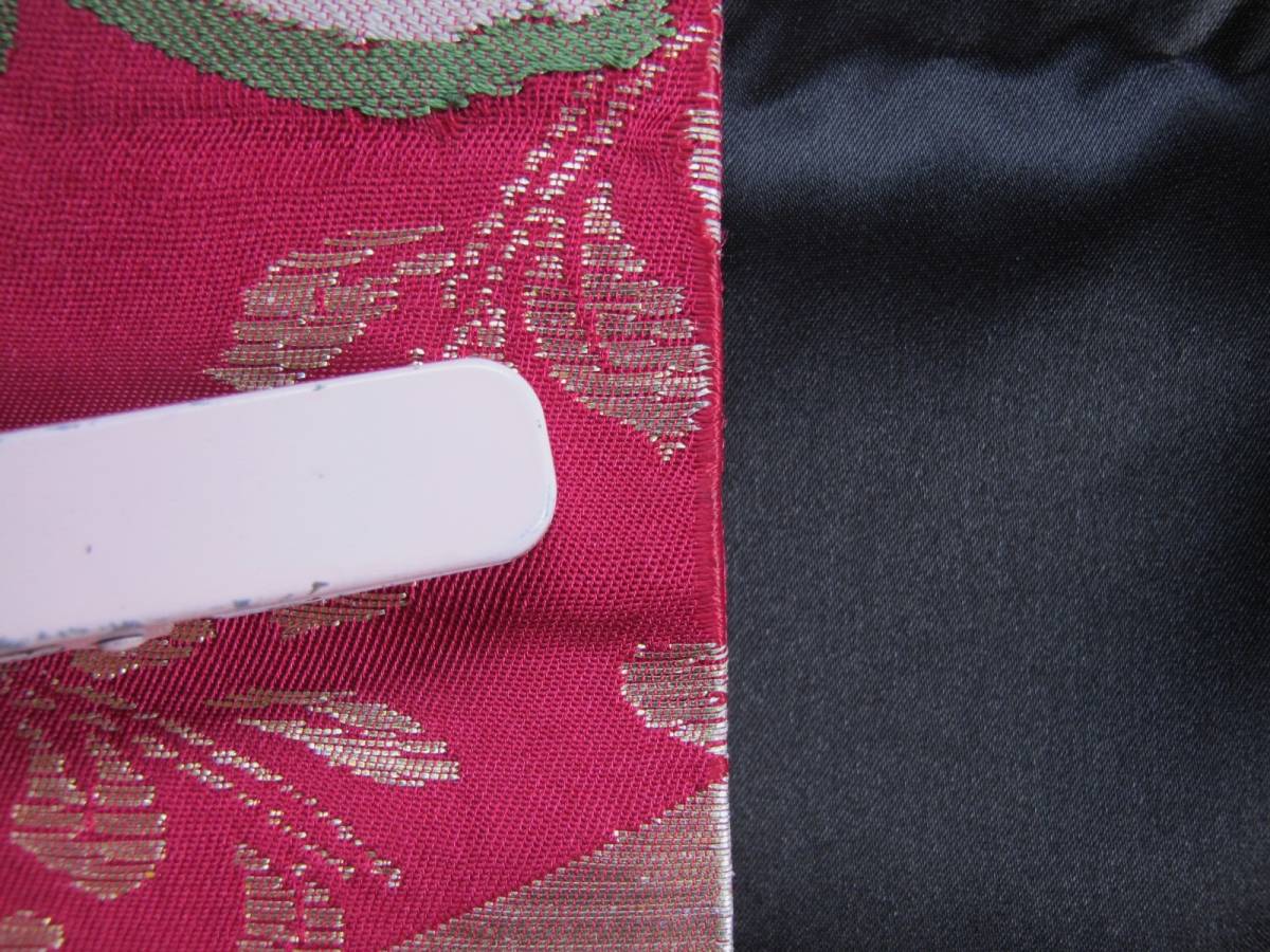 おおよその丈:幅30.5×319.5(たれ107.5+胴212)cm 素材:正絹 お色:えんじ