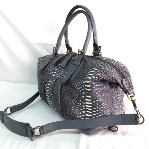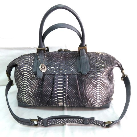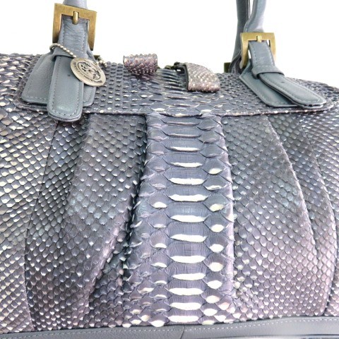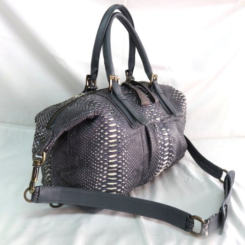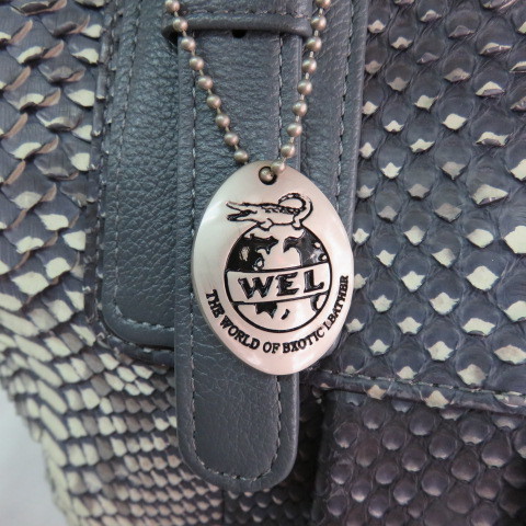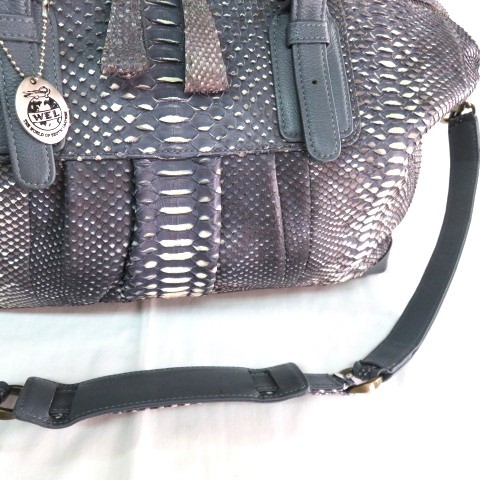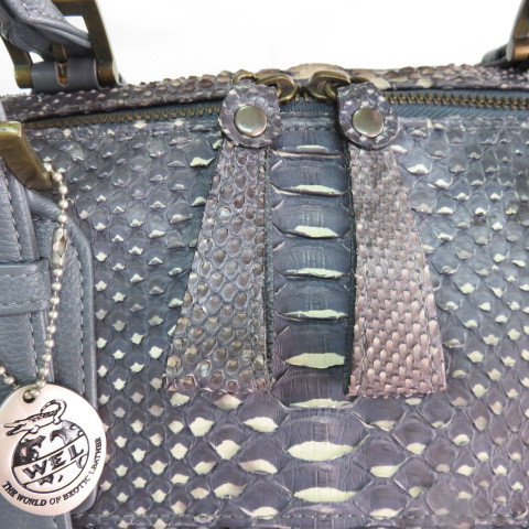 SH 美品 人気 WEL 本物 パイソン 2WAYバッグ ミニボストンバッグ トートバッグ ショルダーバッグ 39cm へび革 ヘビ革 本革 レザー