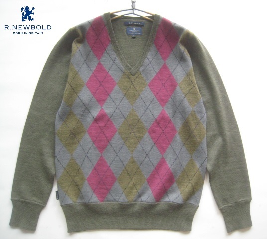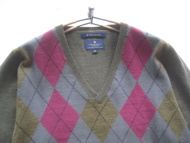 高級!! R.NEWBOLD アーガイル柄Vネックウールニットセーター