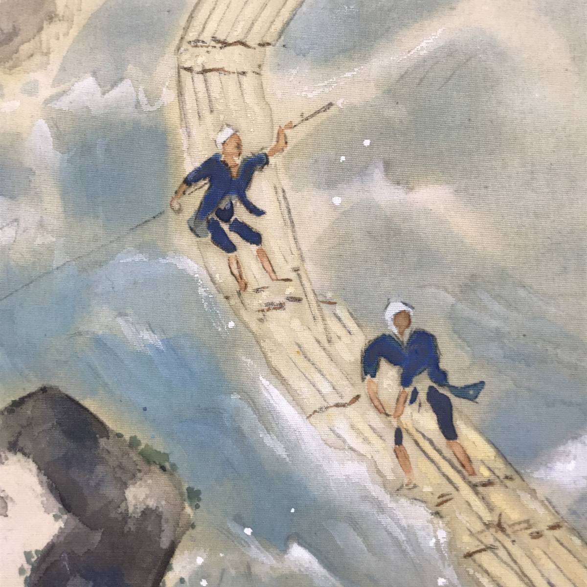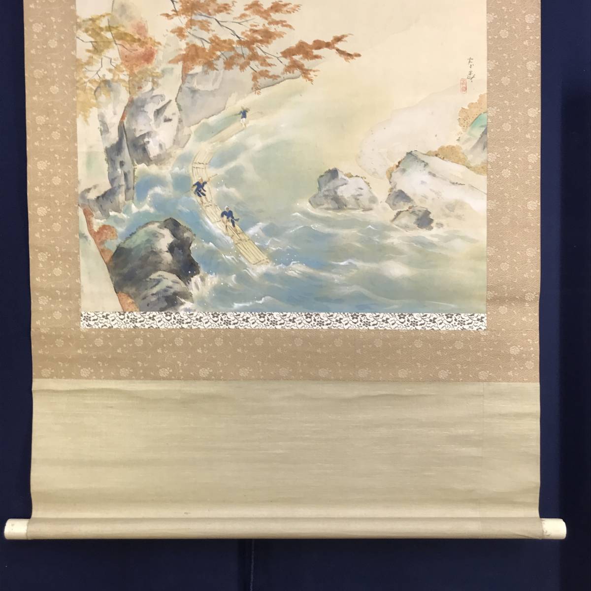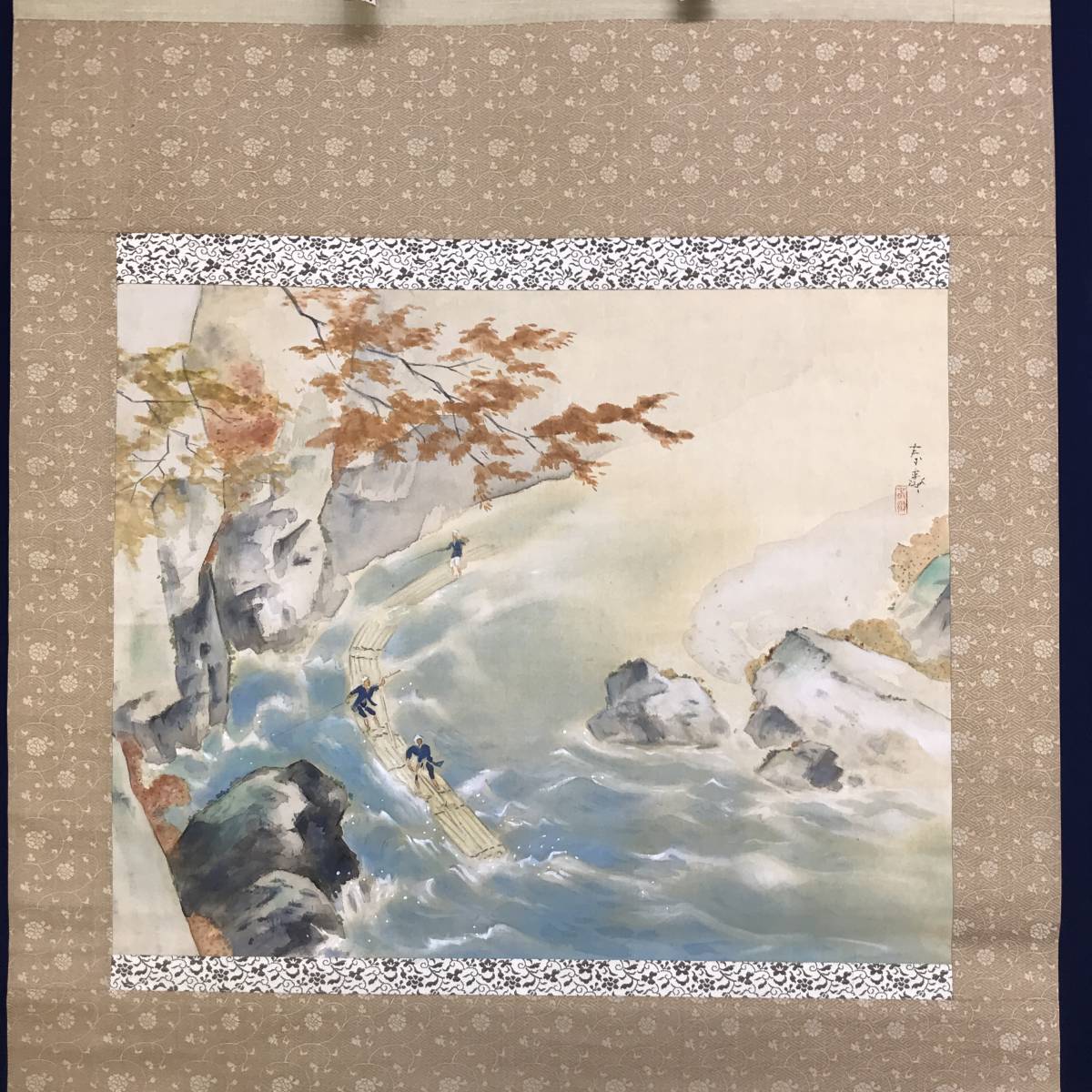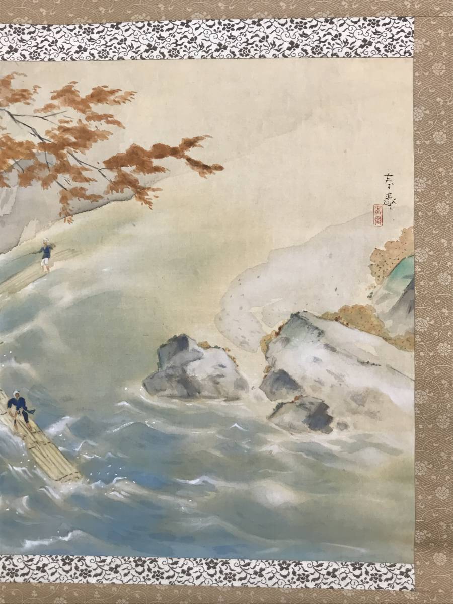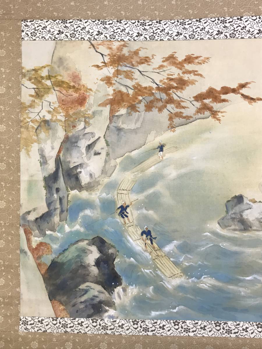 真作/堀江春斎/秋景保津川下り図/山水図/秋景山水図/横物//掛軸☆宝船☆AD-416