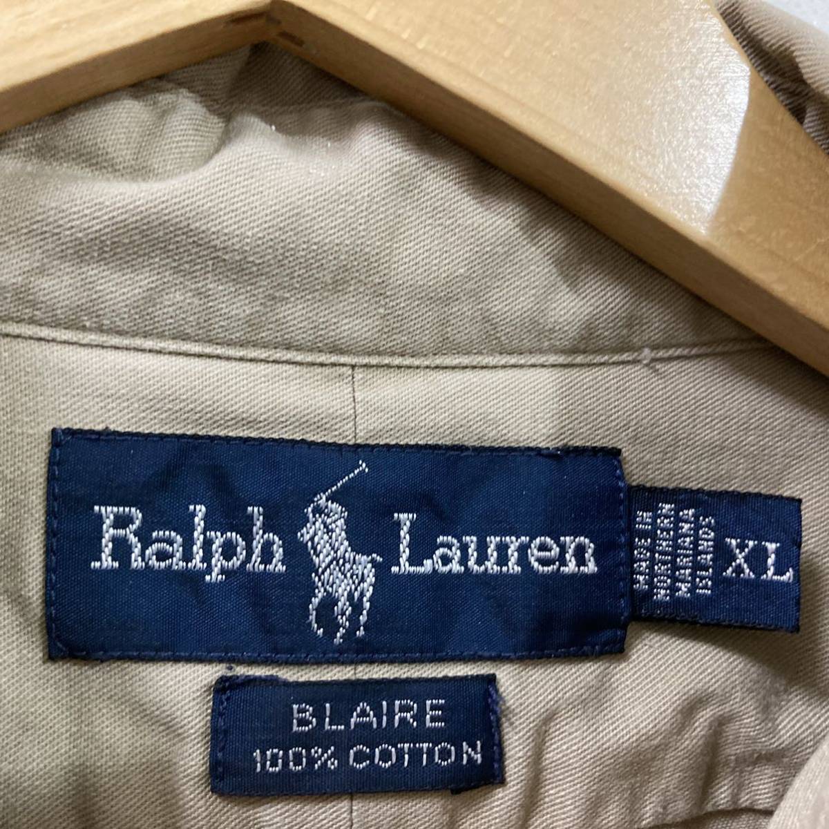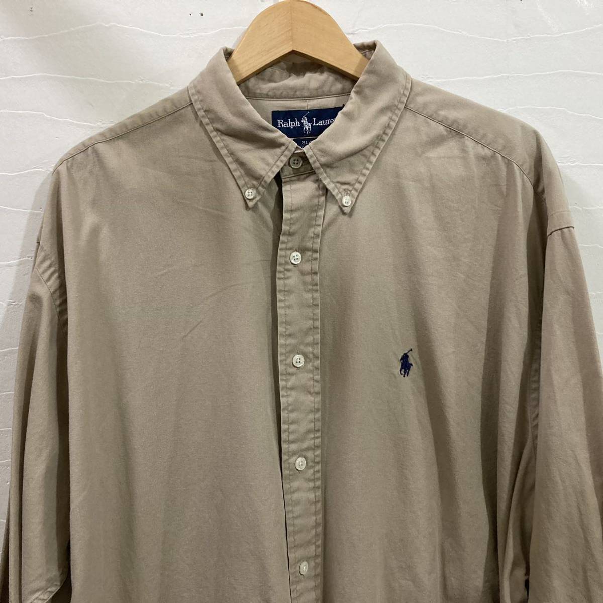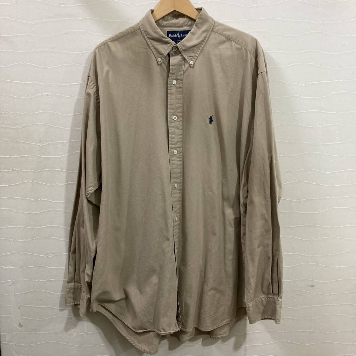 vintageラルフローレン ボタンダウンシャツ ベージュ無地 XL