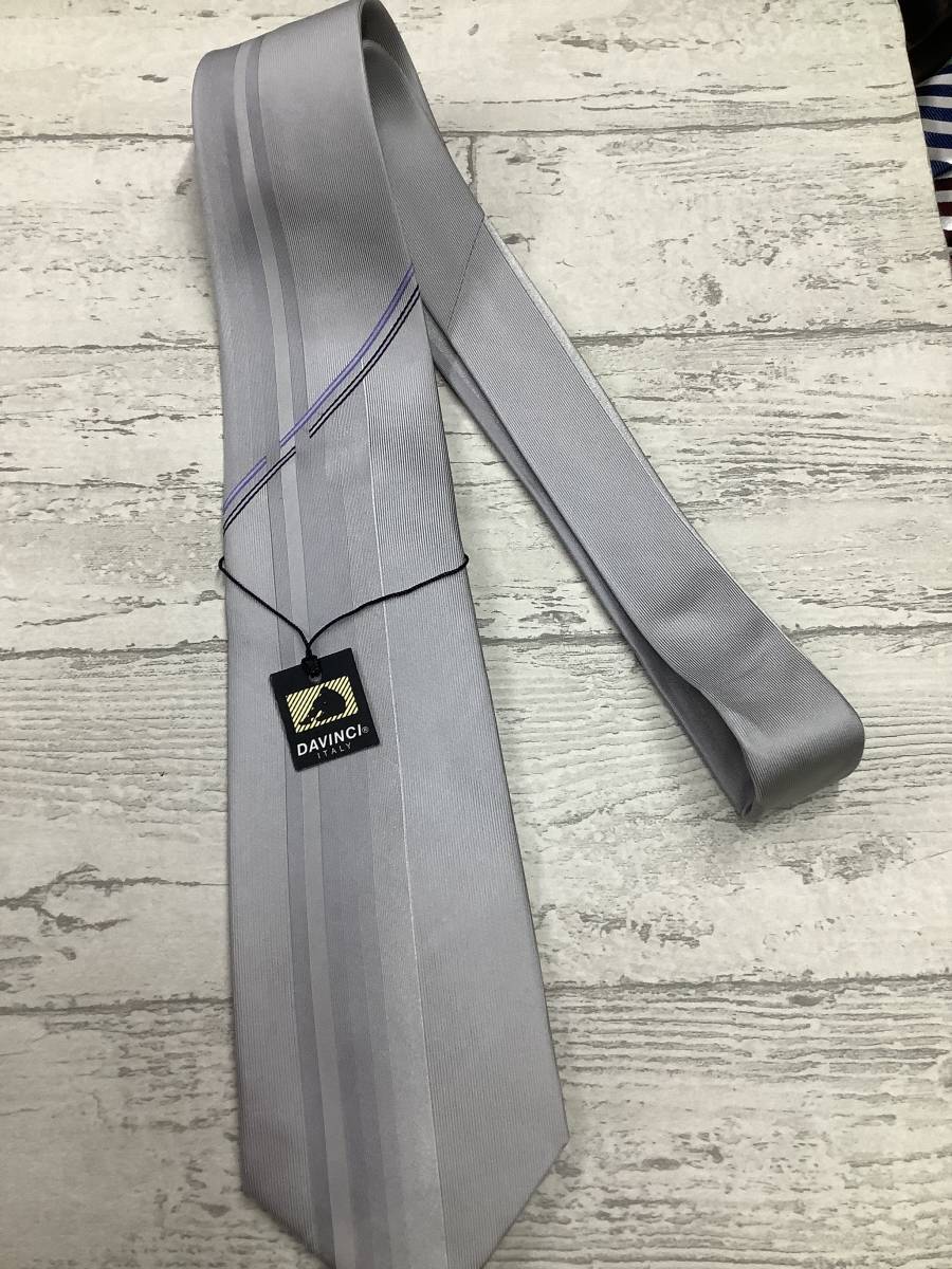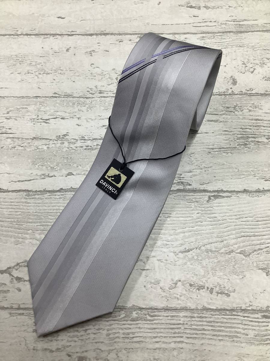 新品未使用 DAVINCI ダヴィンチ 見事なシルバータイ シルク100%ネクタイ お洒落柄 結婚式 パーティ