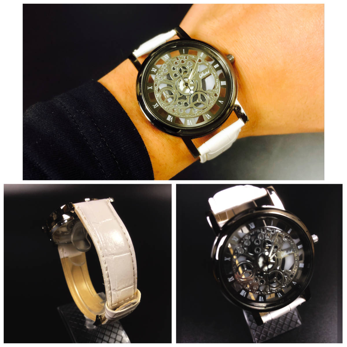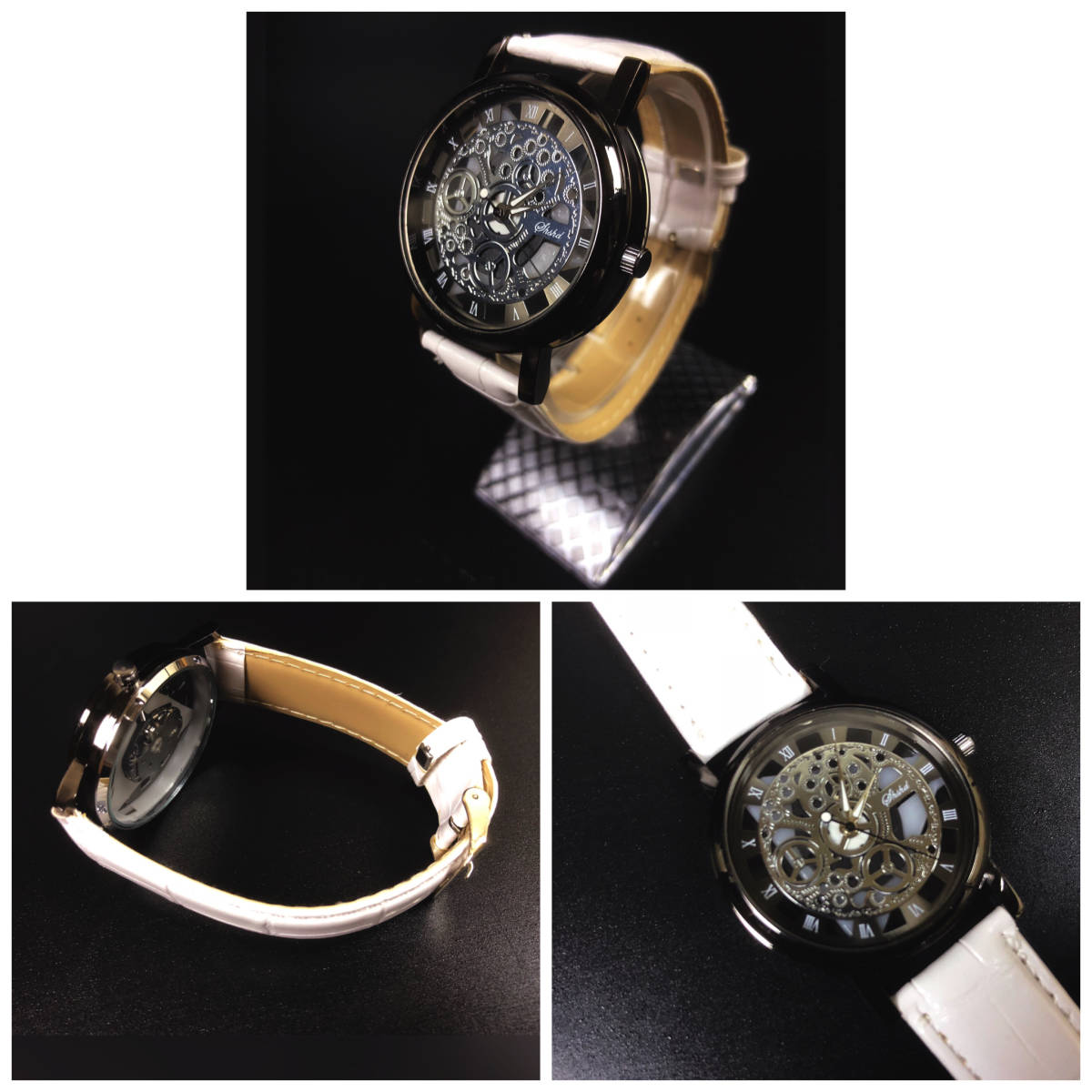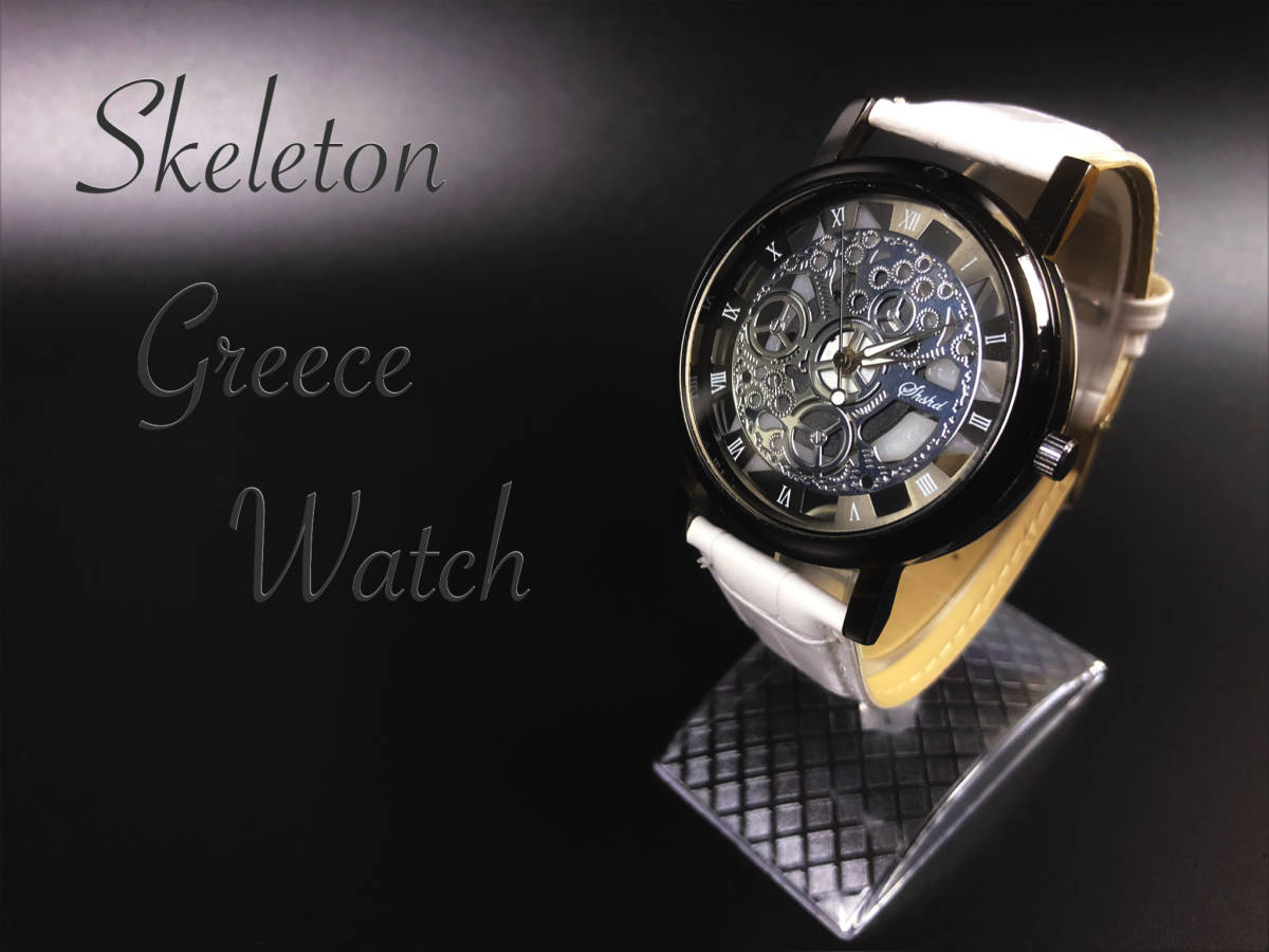 腕時計 時計 ギリシャ文字 ステンレス レザー ベルト 革 アナログ メンズ クォーツ 時計 男女兼用 ブラックフレーム ホワイト 1
