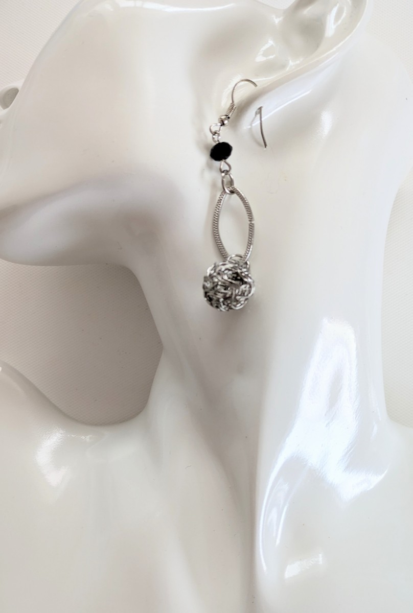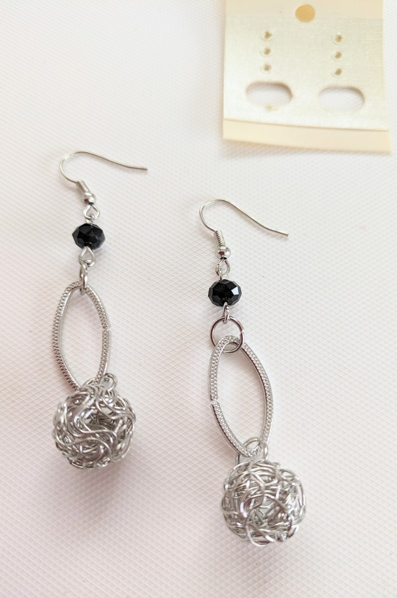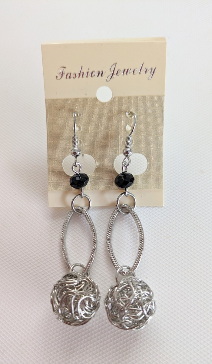 こちらは、新品未使用 ブラックアクリルビーズ シルバーカラー 幾何学模様 ロングフックピアス になります♪