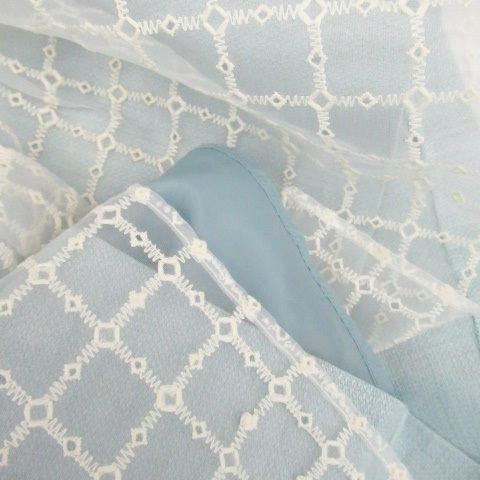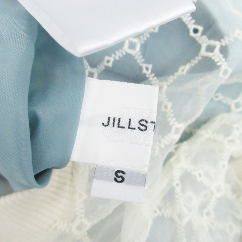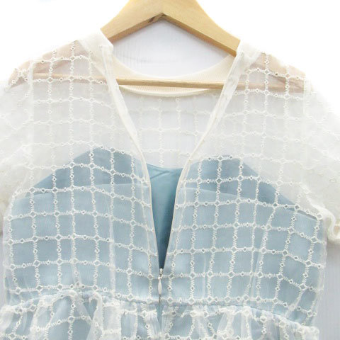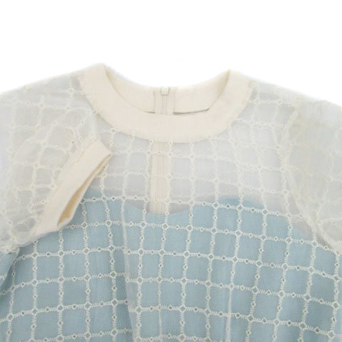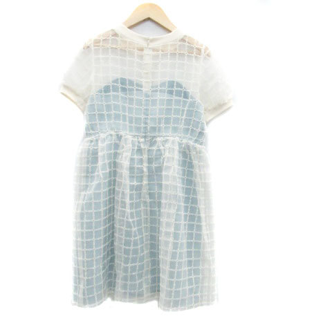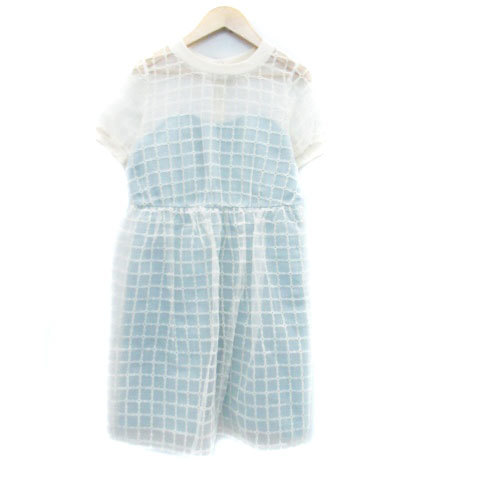 ジルバイジルスチュアート ワンピース ラウンドネック 半袖 ミニ丈 ウィンドウペン柄 シースルー S アイボリー ライトブルー レディース