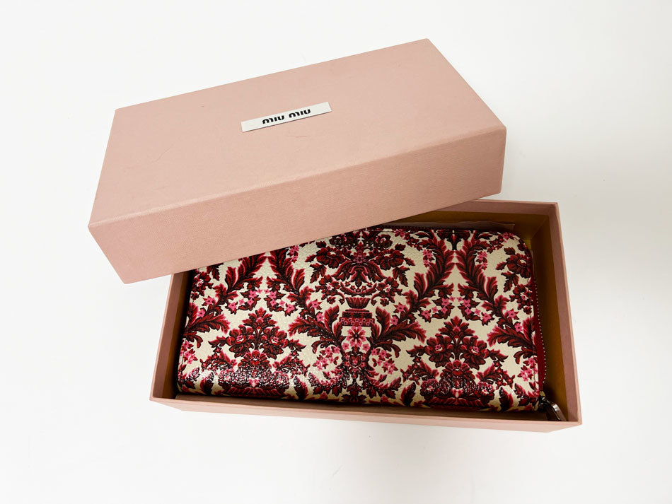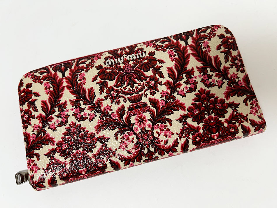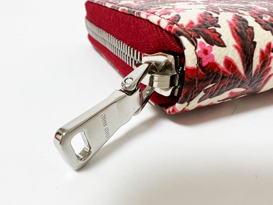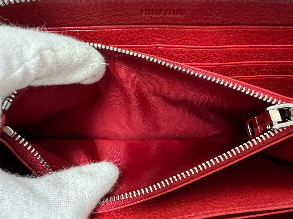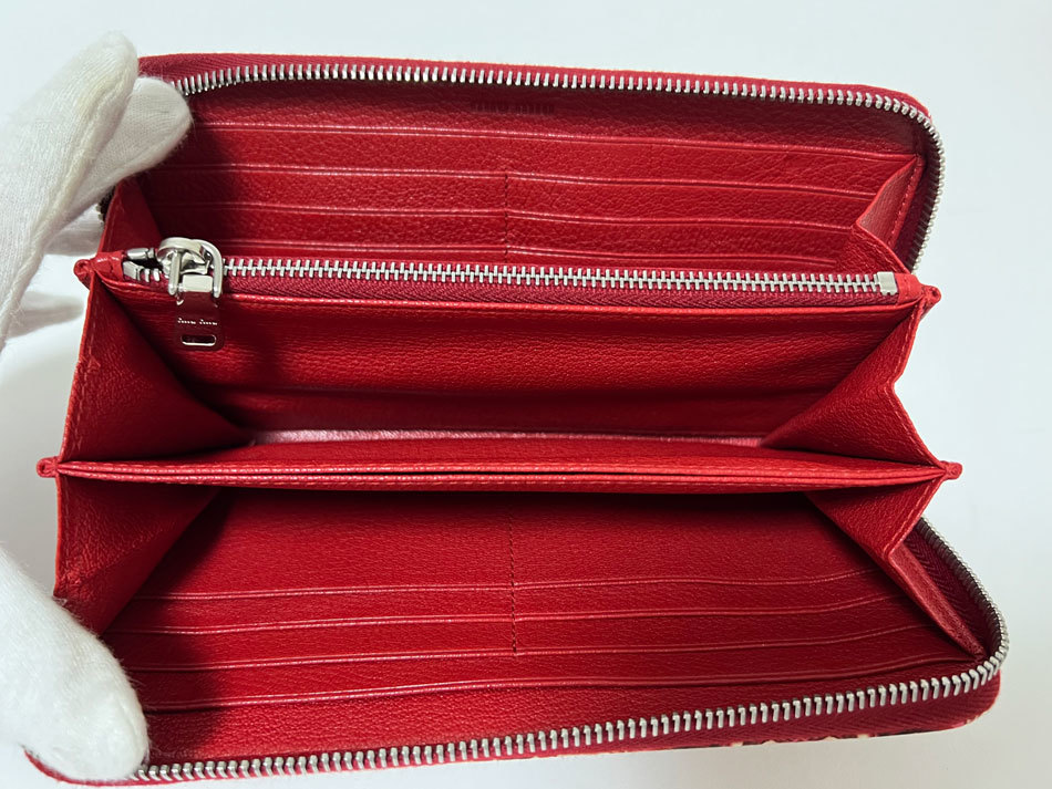 | 商品説明 | ファスナー開閉式 カード入れ×12 ファスナー小銭入れ×1 札入れ×3 ポケット×3 ミュウミュウのラウンドファスナー財布です。 |