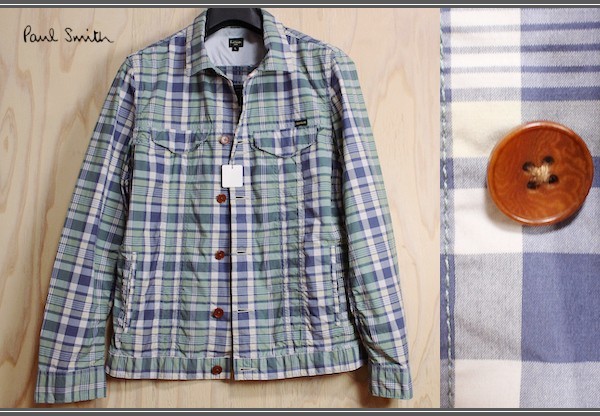 新品 ポールスミス 春夏 コットン チェック ブルゾンM青緑 定価3.1万円/Paul smith/ジャケット