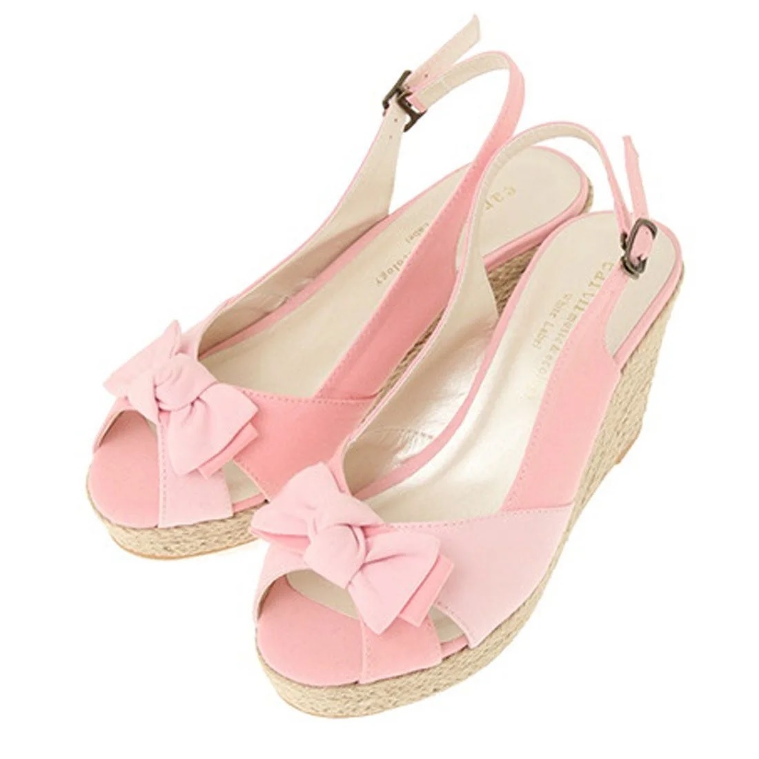 ピンクのリボンが可愛い春から夏まで活躍してくれる、ストラップサンダルです。