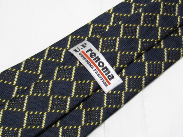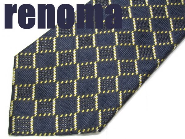 NA 410 【期間限定お試し】 レノマ renoma ネクタイ 紺色系 金糸 チェック柄 ジャガード