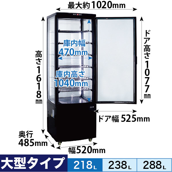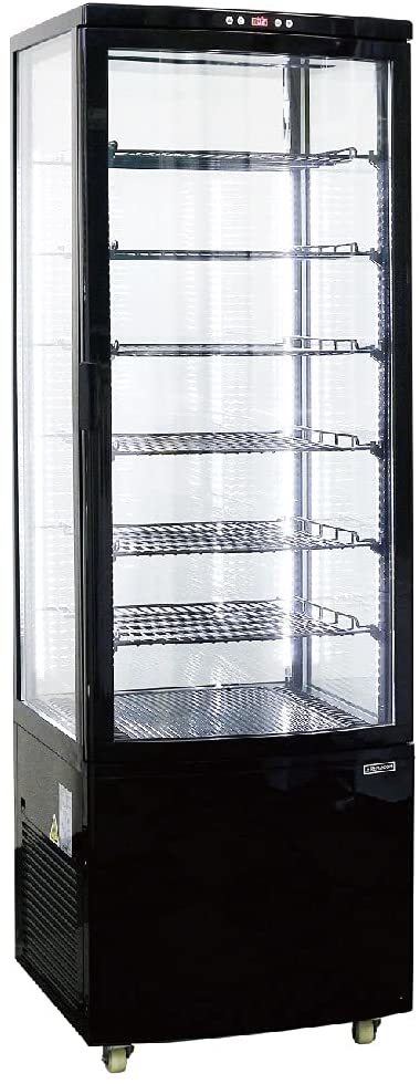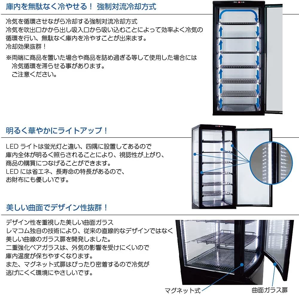レマコム 4面ガラス 冷蔵ショーケース 大型 218L ブラック R4G-218SLB LED 業務用 冷蔵庫 タテ型