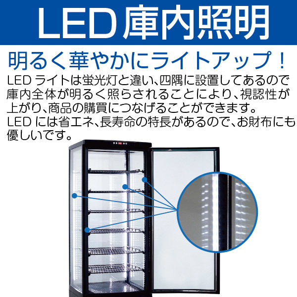 LED照明と結露防止機能で庫内が見やすくなっております。