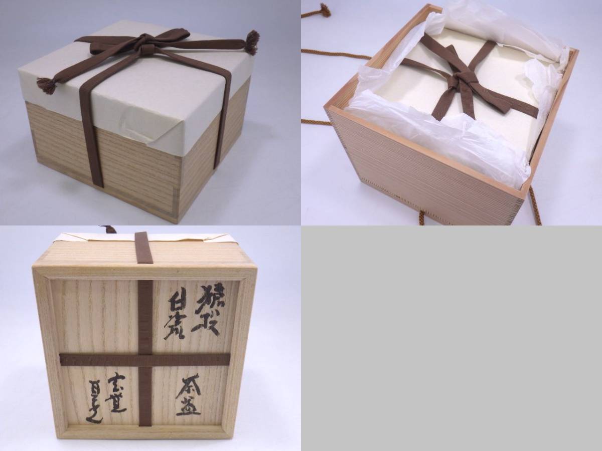 | ★☆h5I001R500 真作 希少 傑作品 杉本貞光(玄覚) 猿投 白瓷 茶碗 共箱 二重箱(紀州箱) 共布☆★ | ||