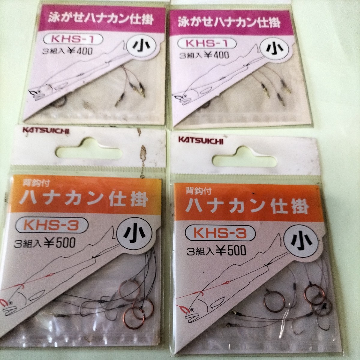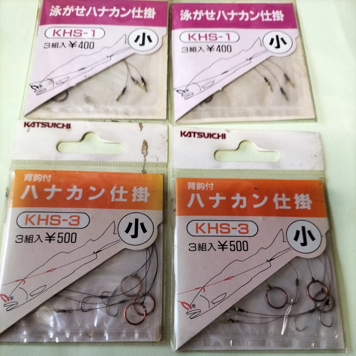 カツイチ 泳がせハナカン仕掛(小)3組入2枚と背カン付きハナカン仕掛3組入2枚定価500円2枚の計4枚セット在庫処分品お安くご提供します