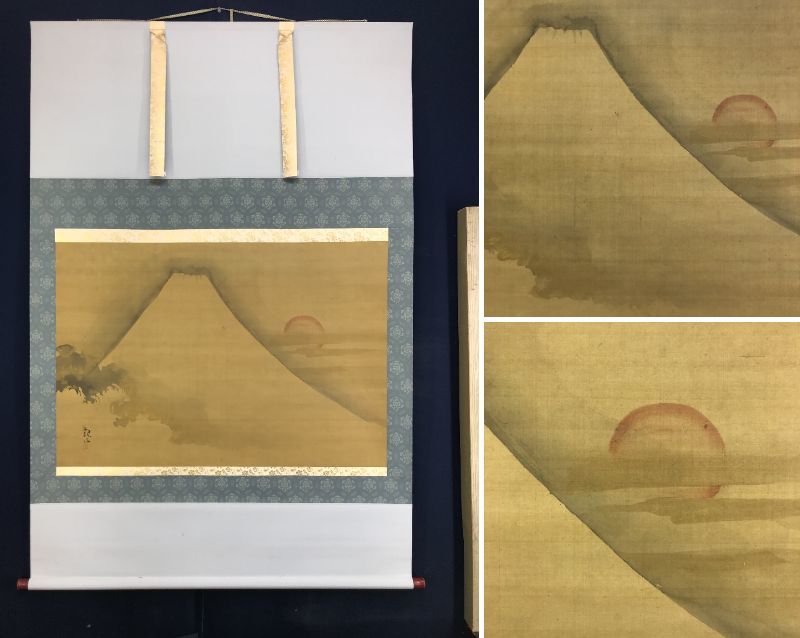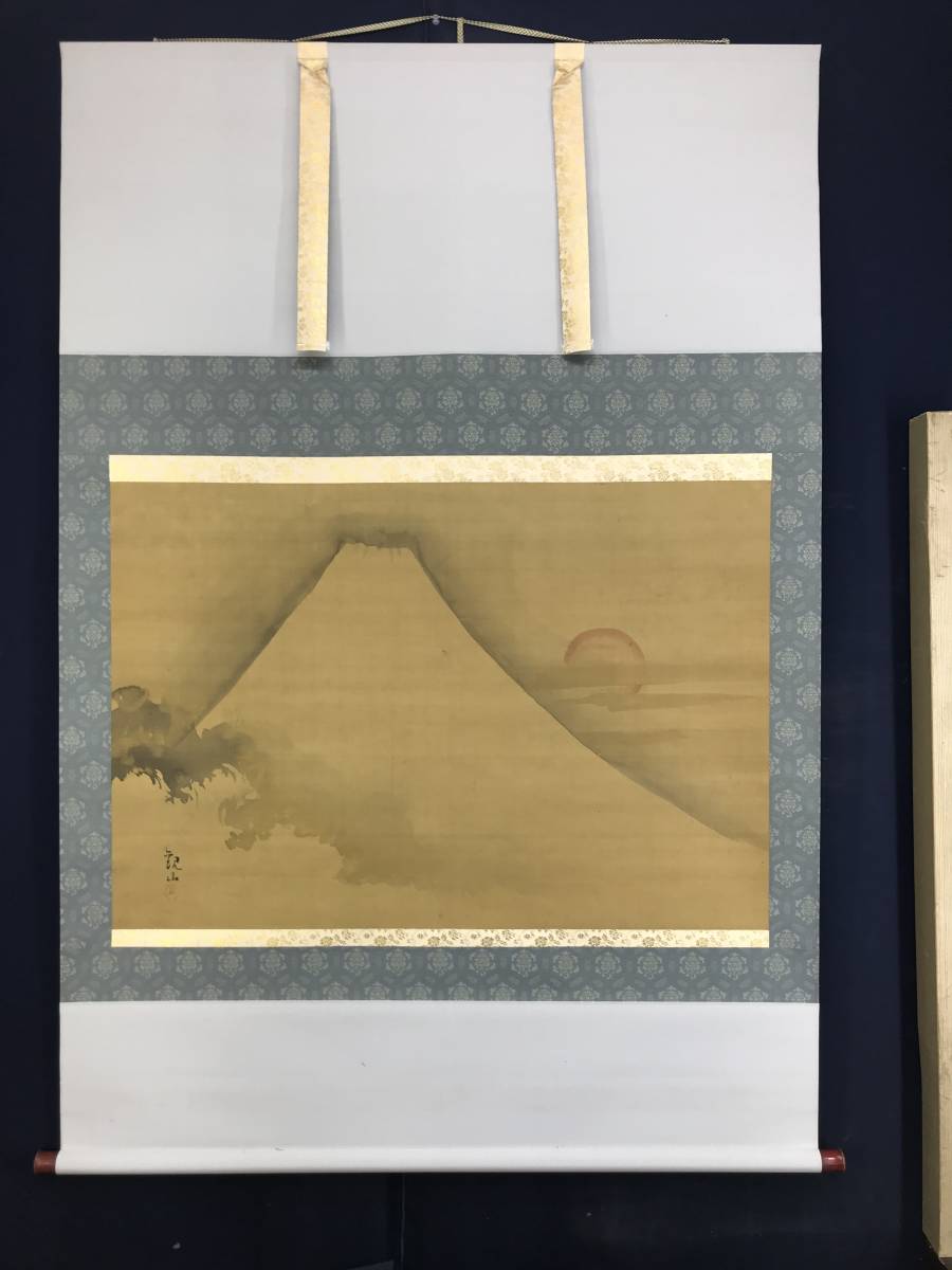 模写/下村観山/富士日ノ出図/富士山図/山水図/大横物//掛軸☆宝船☆AD-235