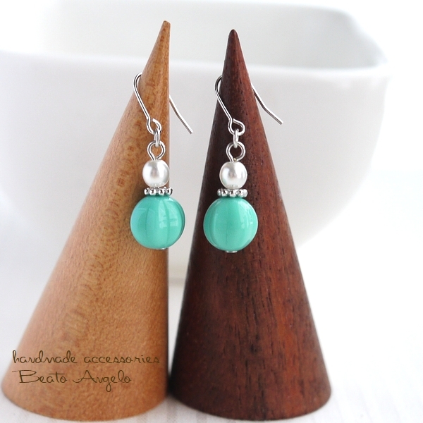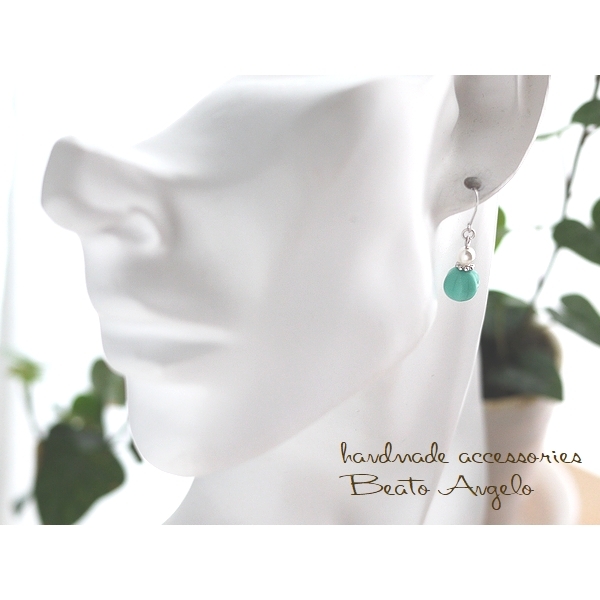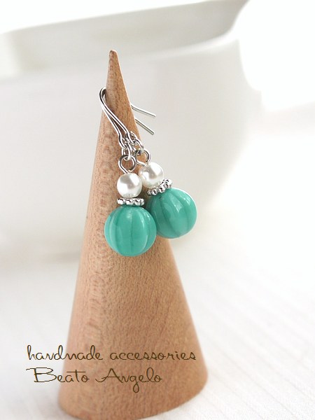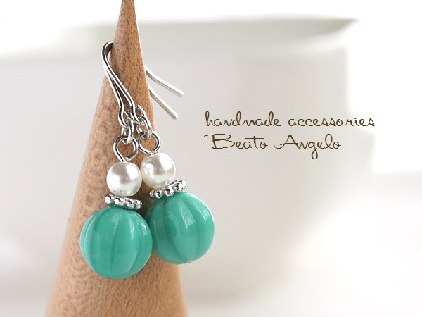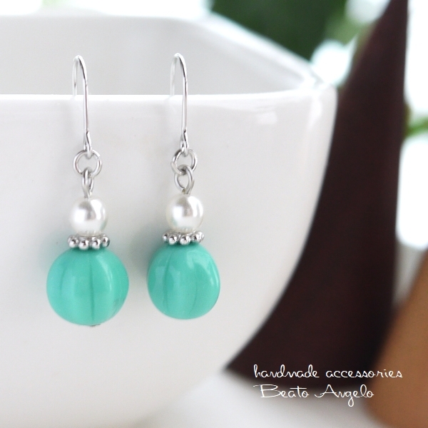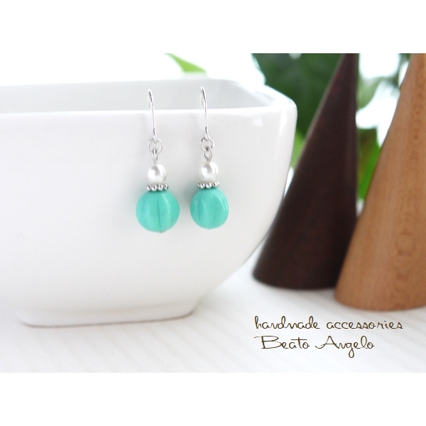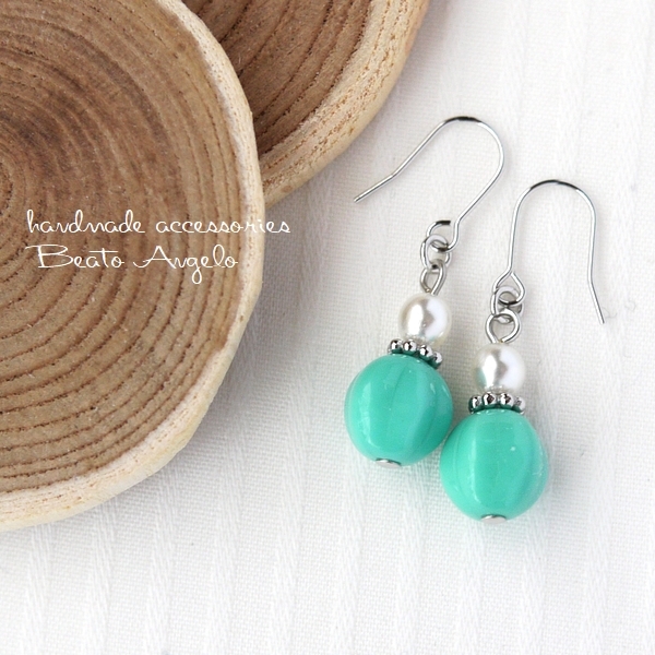 ◆◆+angelo+チェコメロンとチェコパールのピアス(p-176)ターコイズ S 香水瓶 シンプル 夏 ブルー チタン 樹脂 イヤリング