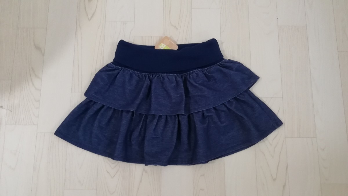 おなかソフト★ 140 Crazy8 デニム風 ミニスカート 綿 フリル 段