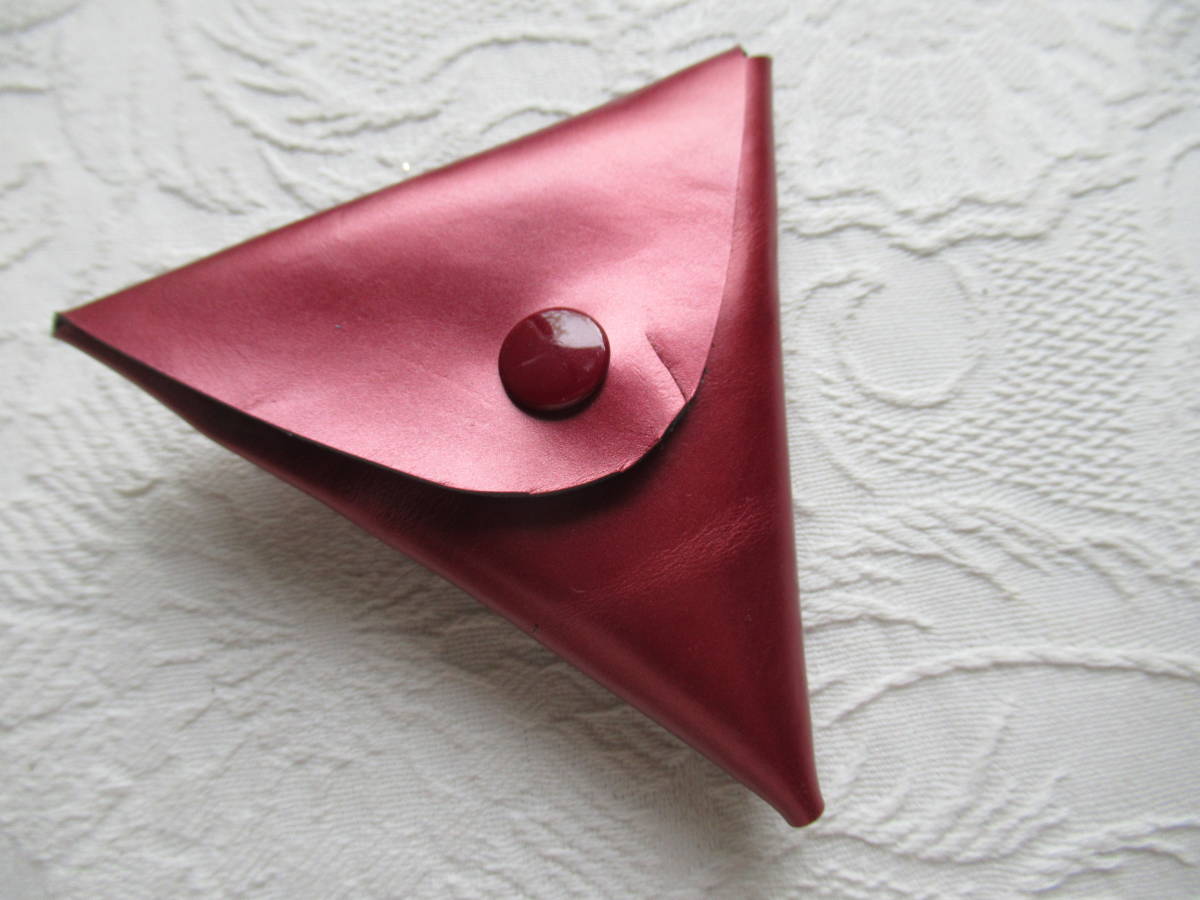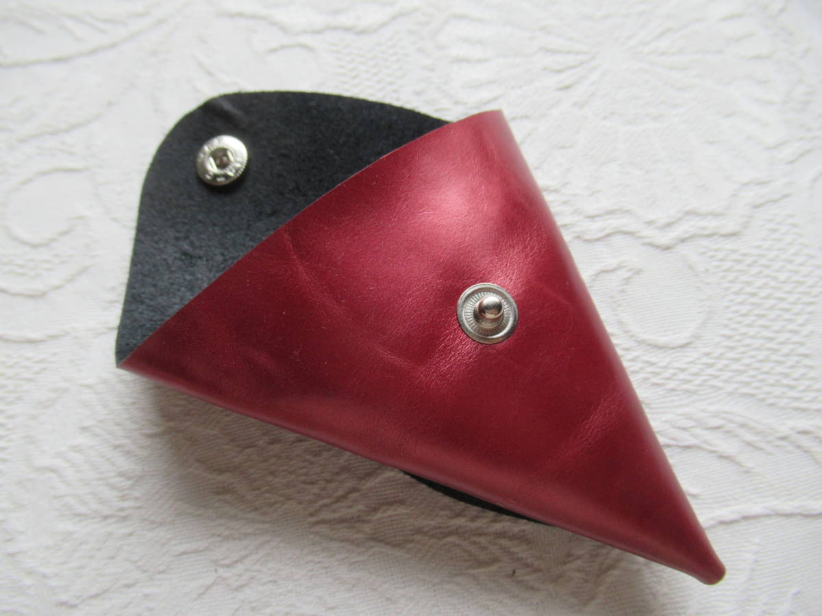 手作り 本革製三角財布 コインケース 小銭入れ えんじ光沢あり