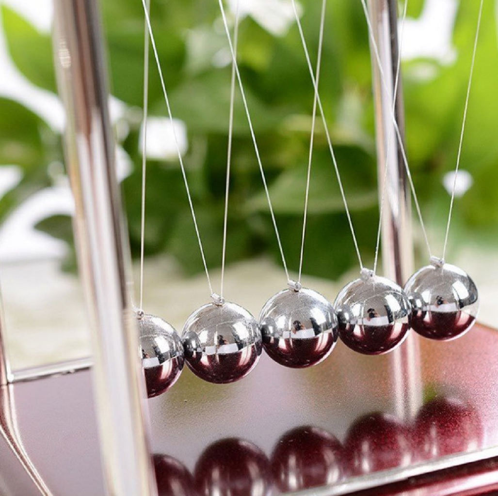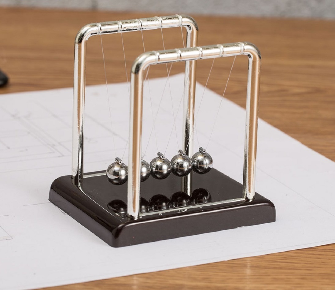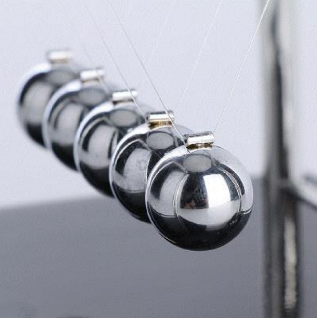 逆の球が並んだ球に戻ってぶつかると、また同じ現象が起きるアレです。