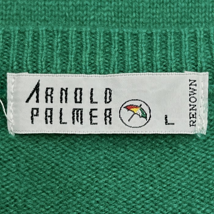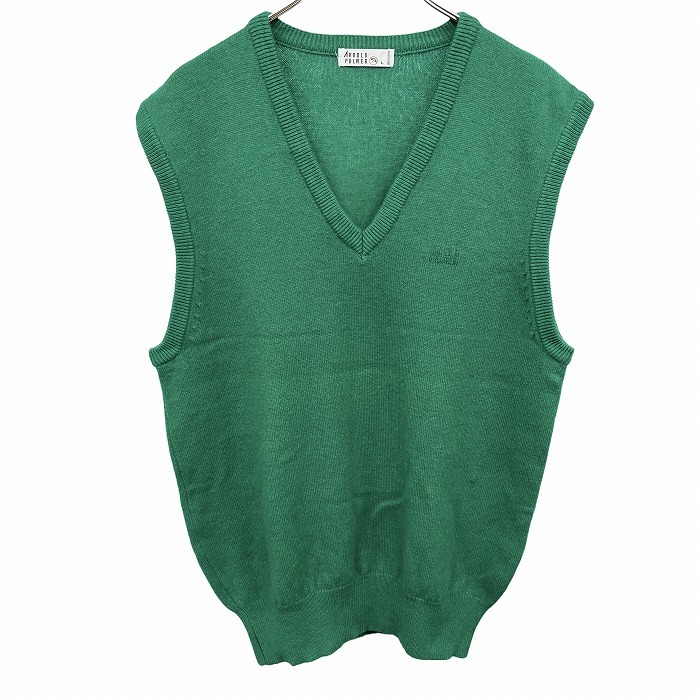 商品タイトル | アーノルドパーマー Arnold Palmer プルオーバー ニット ベスト Vネック 胸に英字のロゴ刺繍 ウール×ナイロン L グリーン 緑 メンズ |