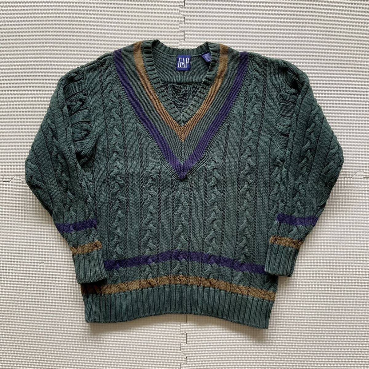 80s 90s VINTAGE GAP オールド ギャップ ケーブルニット コットン セーター Vネック S