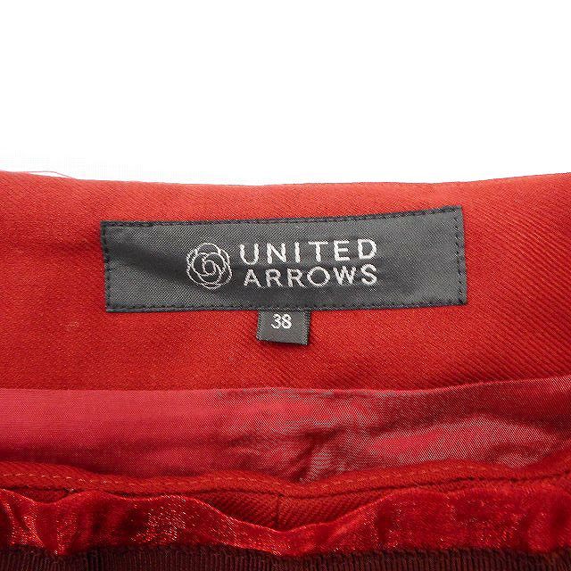 ユナイテッドアローズ UNITED ARROWS プリーツスカート ひざ丈 ウエスト装飾 無地 ウール混 38 レッド 赤 /FT31 レディース