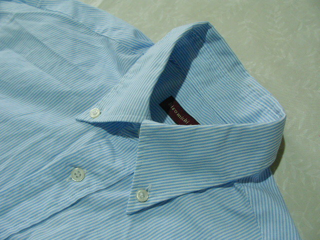 ssy7366 hiromichi nakano 長袖 シャツ ブルー×ホワイト ■ ストライプ柄 ■ ボタンダウン 綿混素材 Sサイズ
