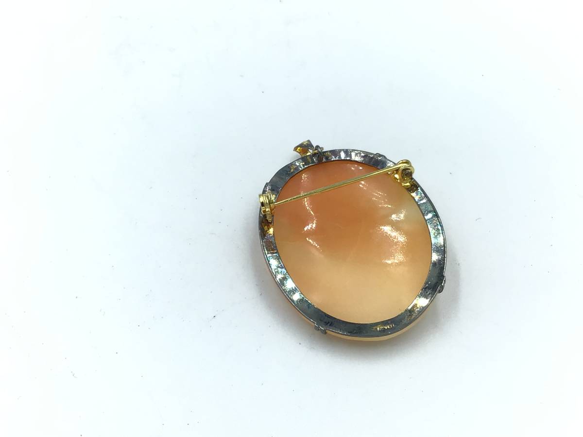 Y384 SILVER/シルバー カメオ ペンダントトップ ブローチ ヴィンテージ ピンク系 シェルカメオ アンティーク