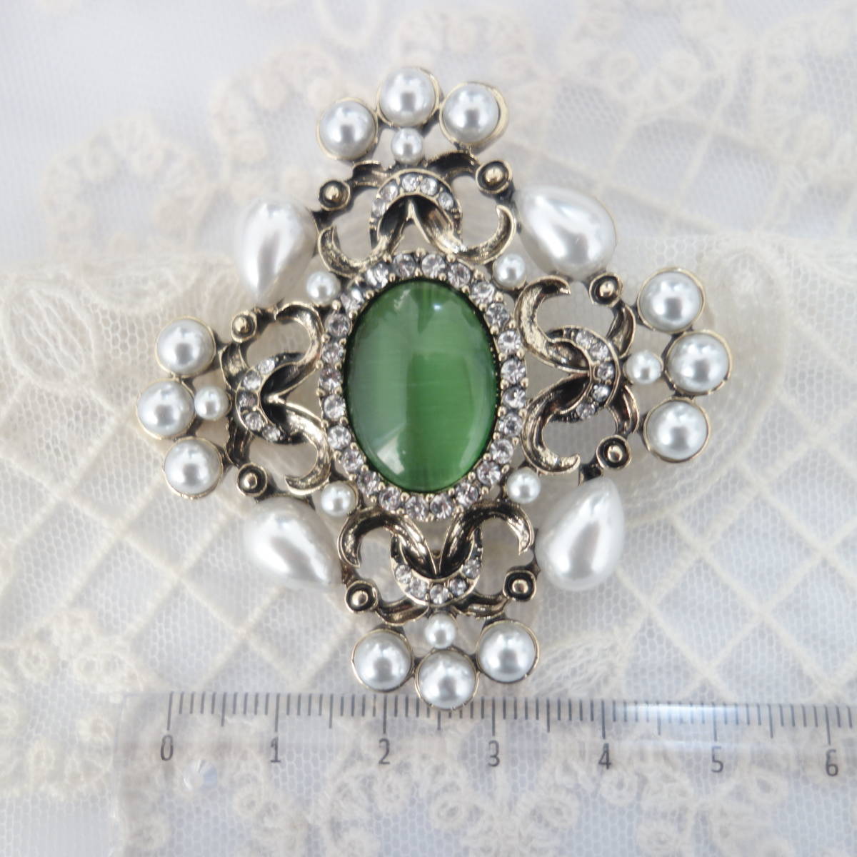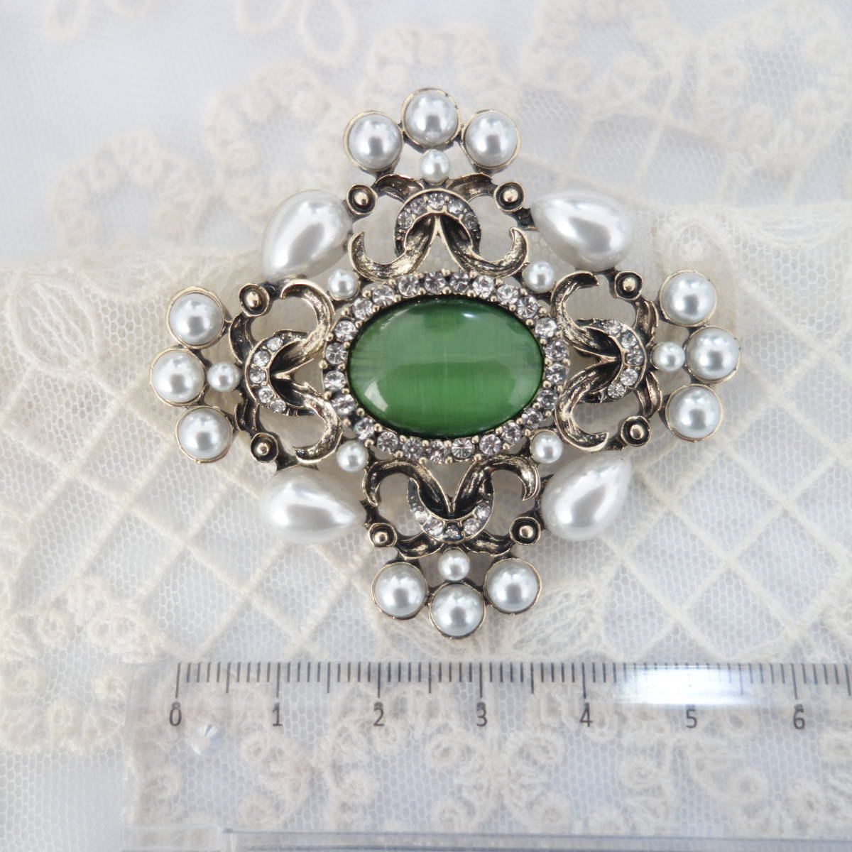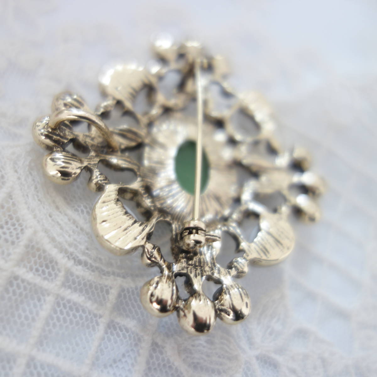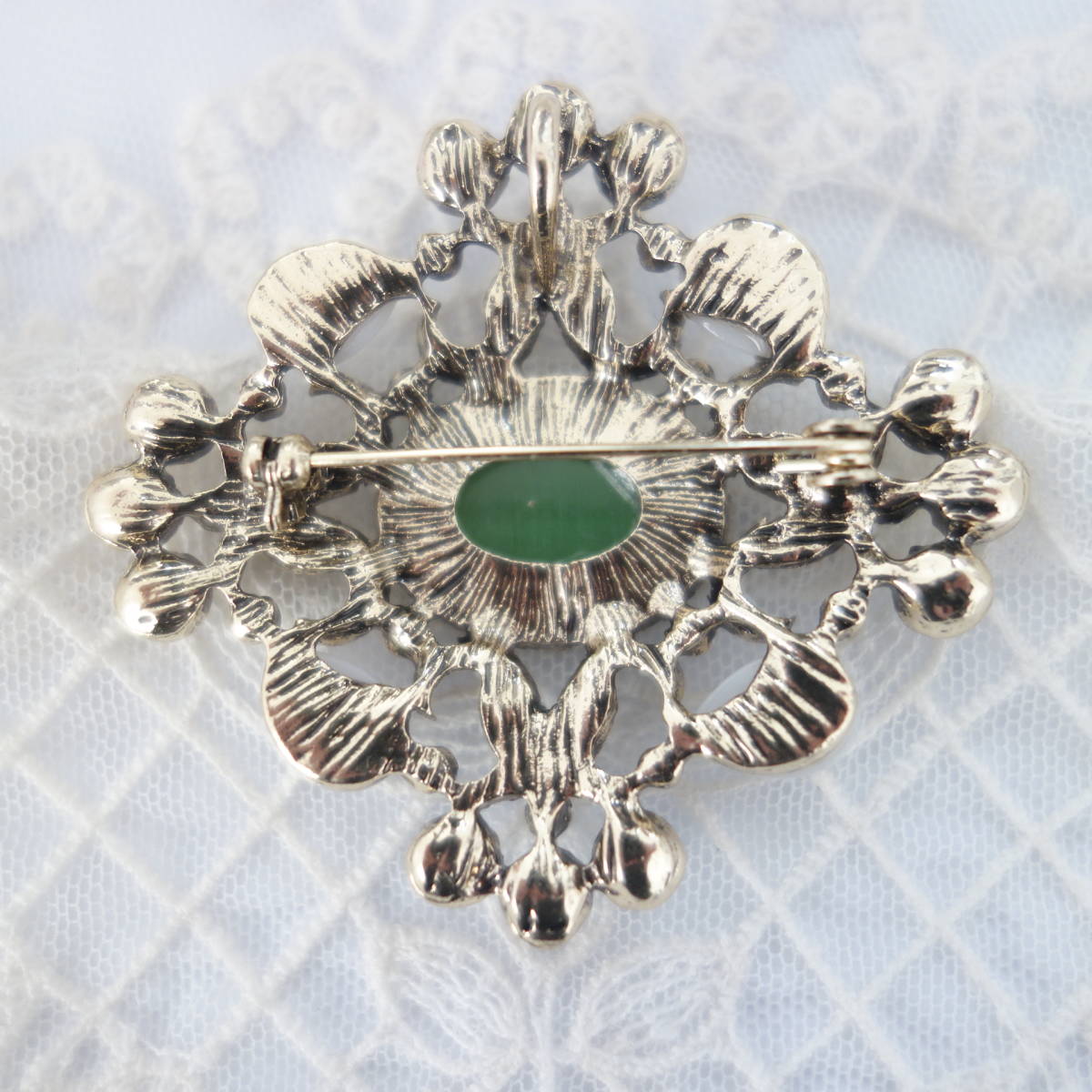 裏側にはブローチピンの他に、チェーンを通すフックも付いているので お手持ちのペンダントチェーンをを通してペンダントとしても楽しめます。