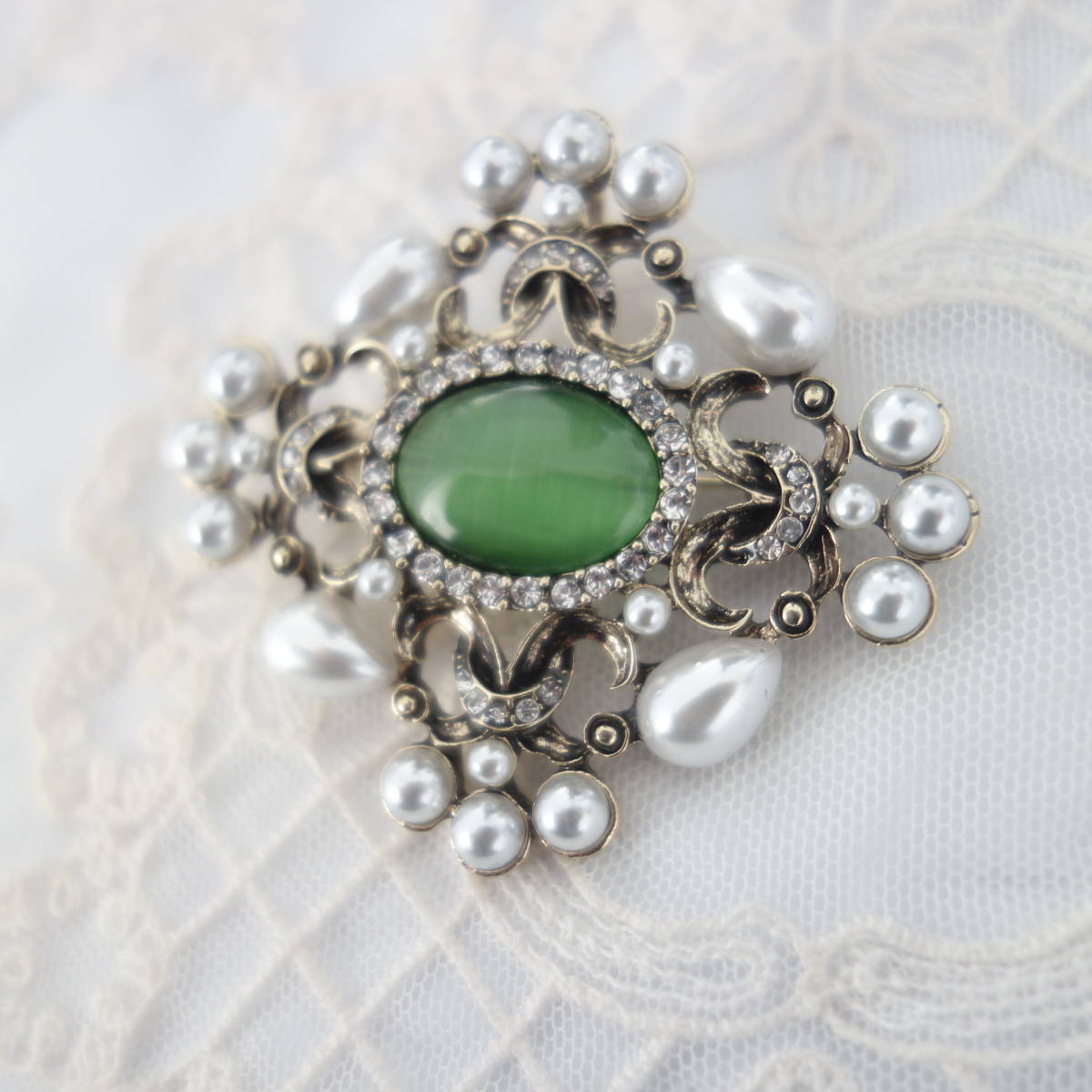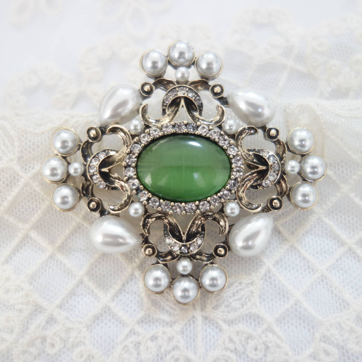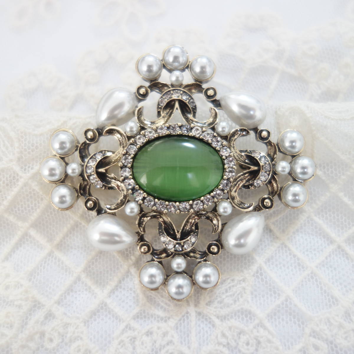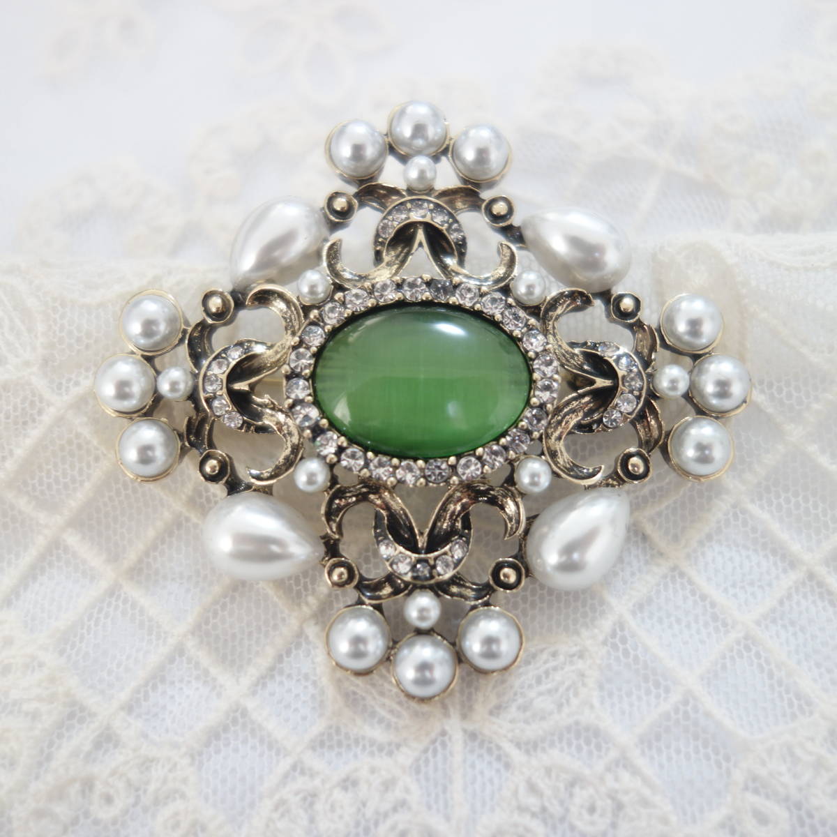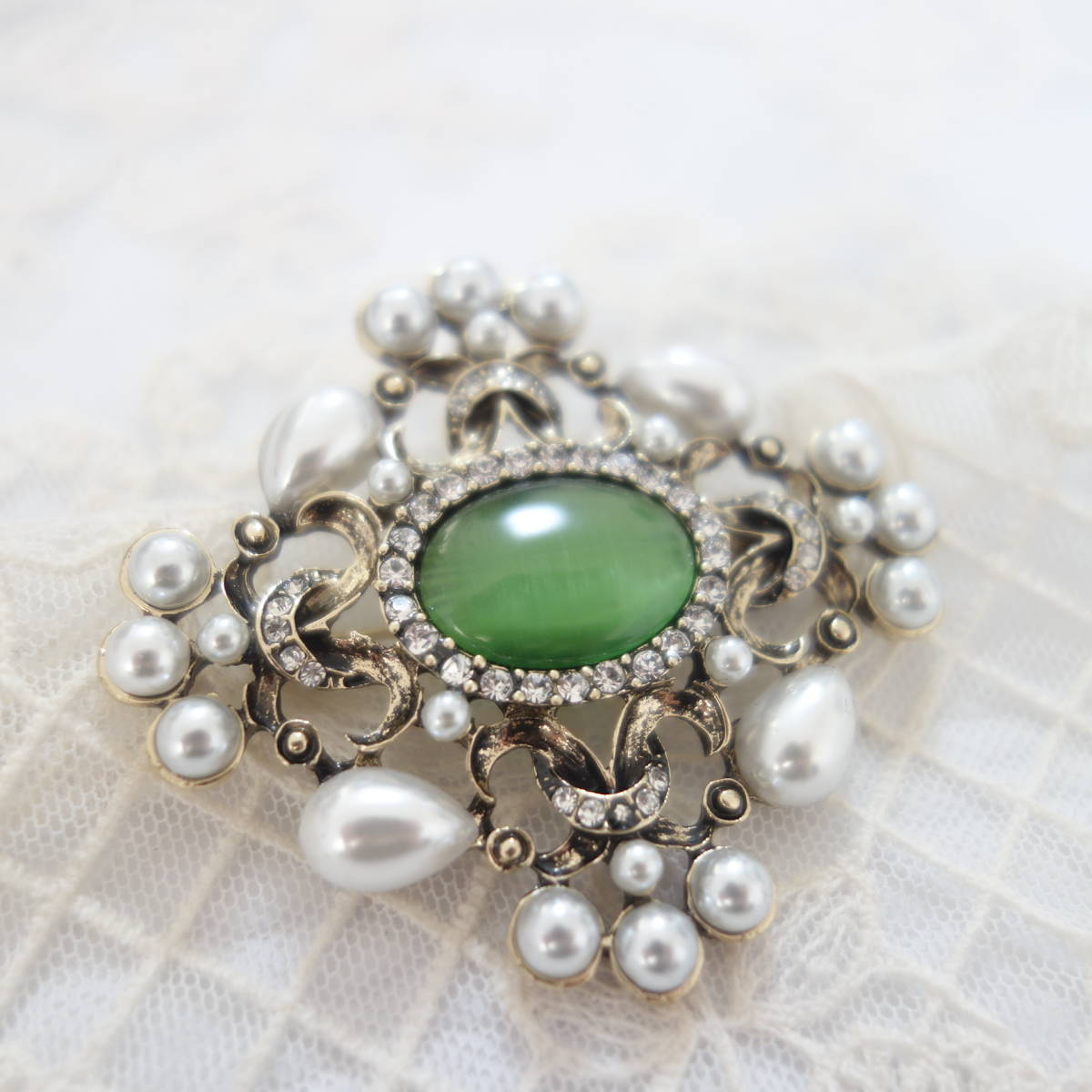 裏側にはブローチピンの他に、チェーンを通すフックも付いているので お手持ちのペンダントチェーンをを通してペンダントとしても楽しめます。