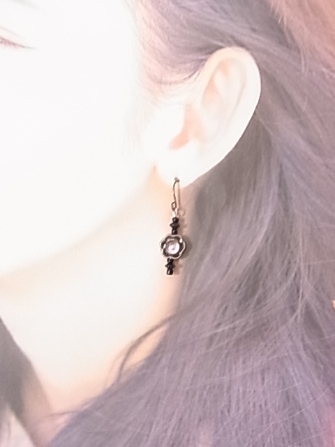 ヴィンテージ 可愛いサイズ イミテーションストーンが煌く シックデザイン 耳元で揺れるピアス♪