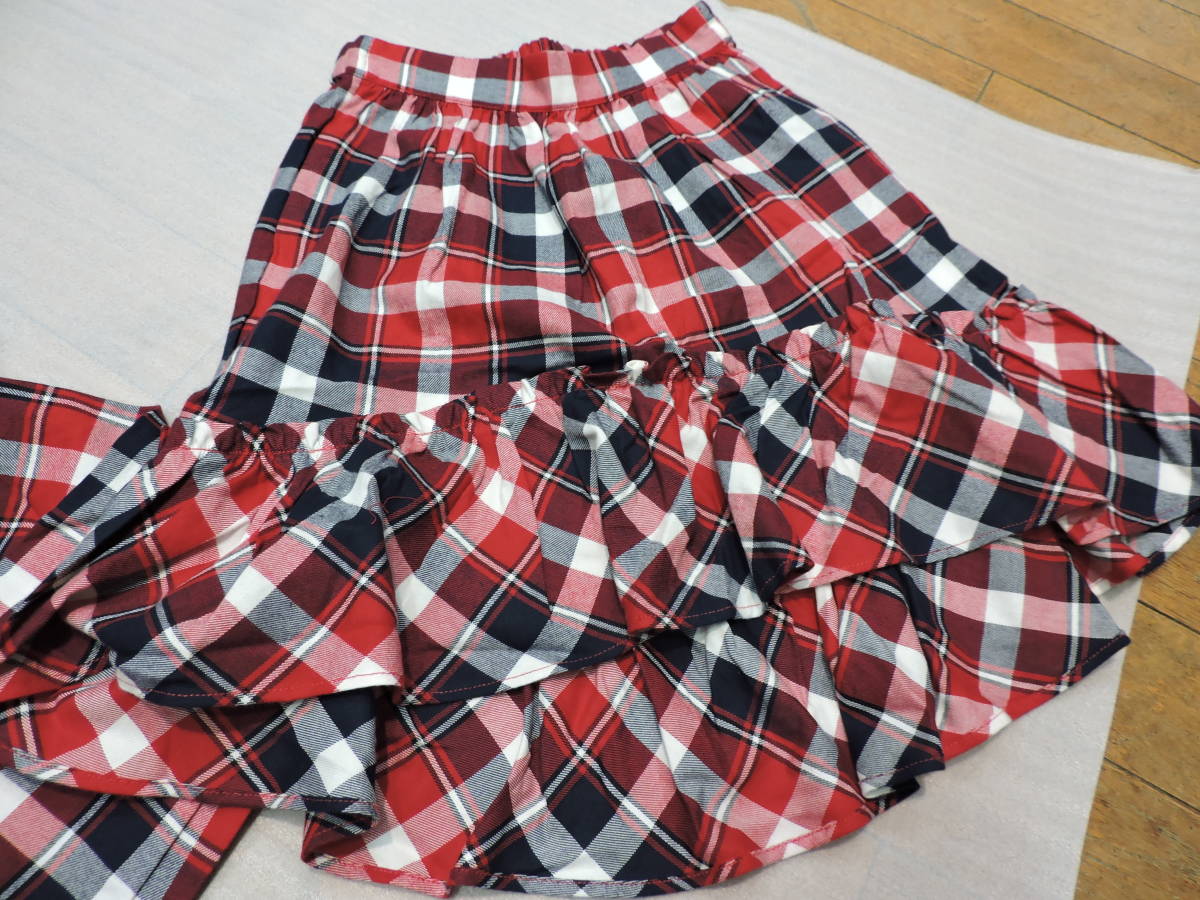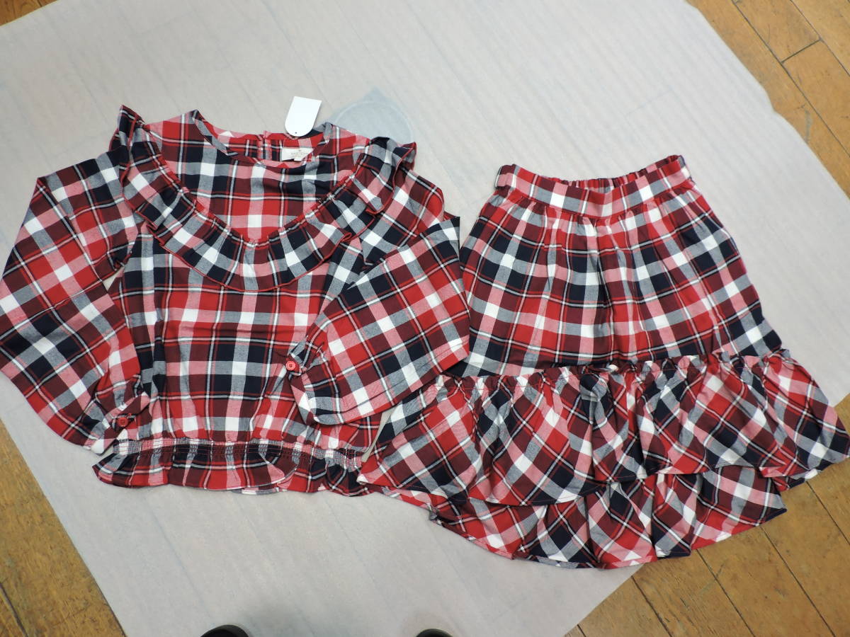 | KATE SPADEのセットアップです。 サイズ表記が、 140です。 色が、 赤・紺・白チェックです。 トップスの着丈が 47cmです。 スカートの着丈が 41~52cmです。 素材が、 綿 100%です。 状態は、 多少使用感がございます。 |