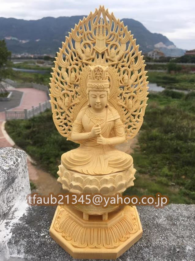 真言密教 大日如来坐像 精密細工 ヒノキ檜木 自然木 仏像 職人 手作り 置物 彫刻 美術品 東洋彫刻 高さ28cm