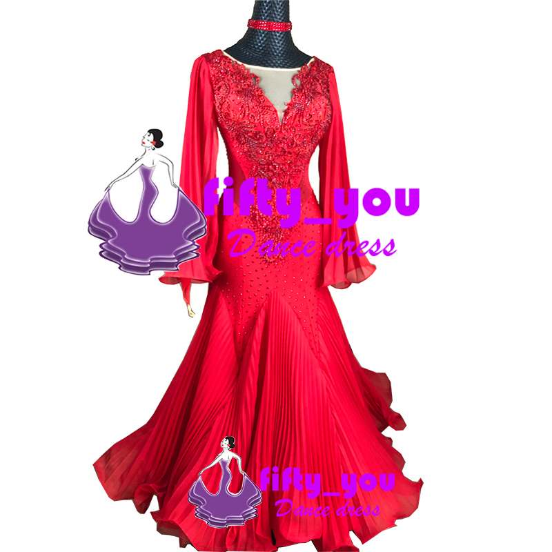 新品fifty_youハイクオリティ社交ダンス衣装 ダンスパーティー競技ドレス ライトストーン+花柄飾 モダンデザイン サイズセミオーダー 赤色