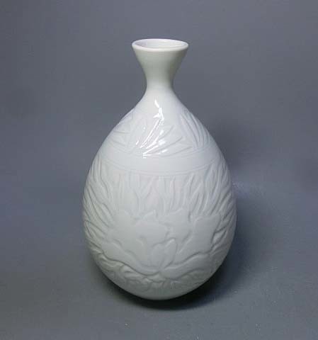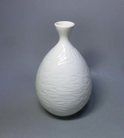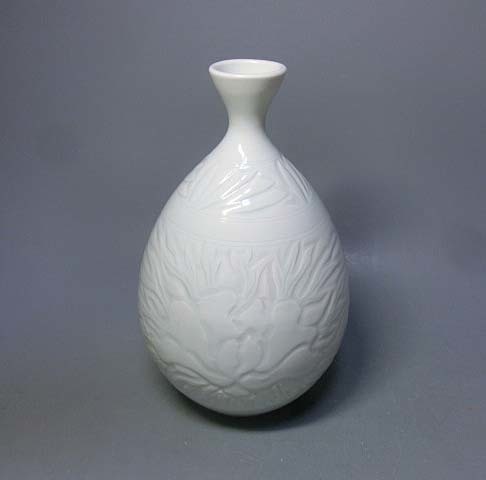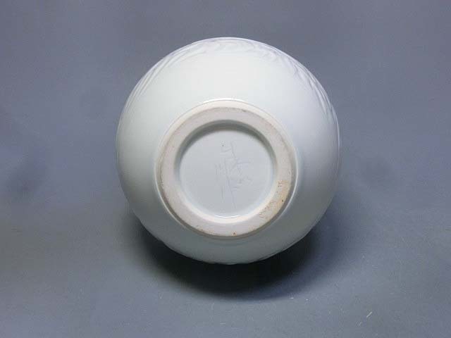 藤井朱明 作 白磁陰刻花模様花瓶(共箱)茶道具