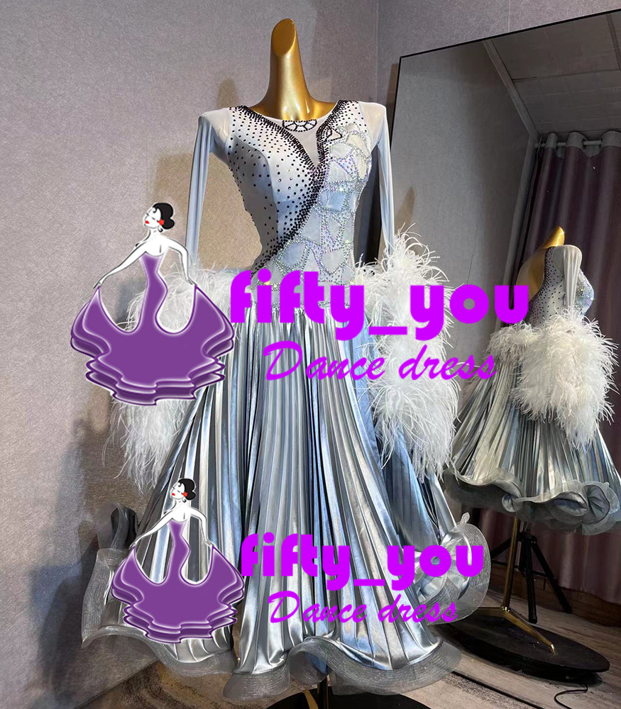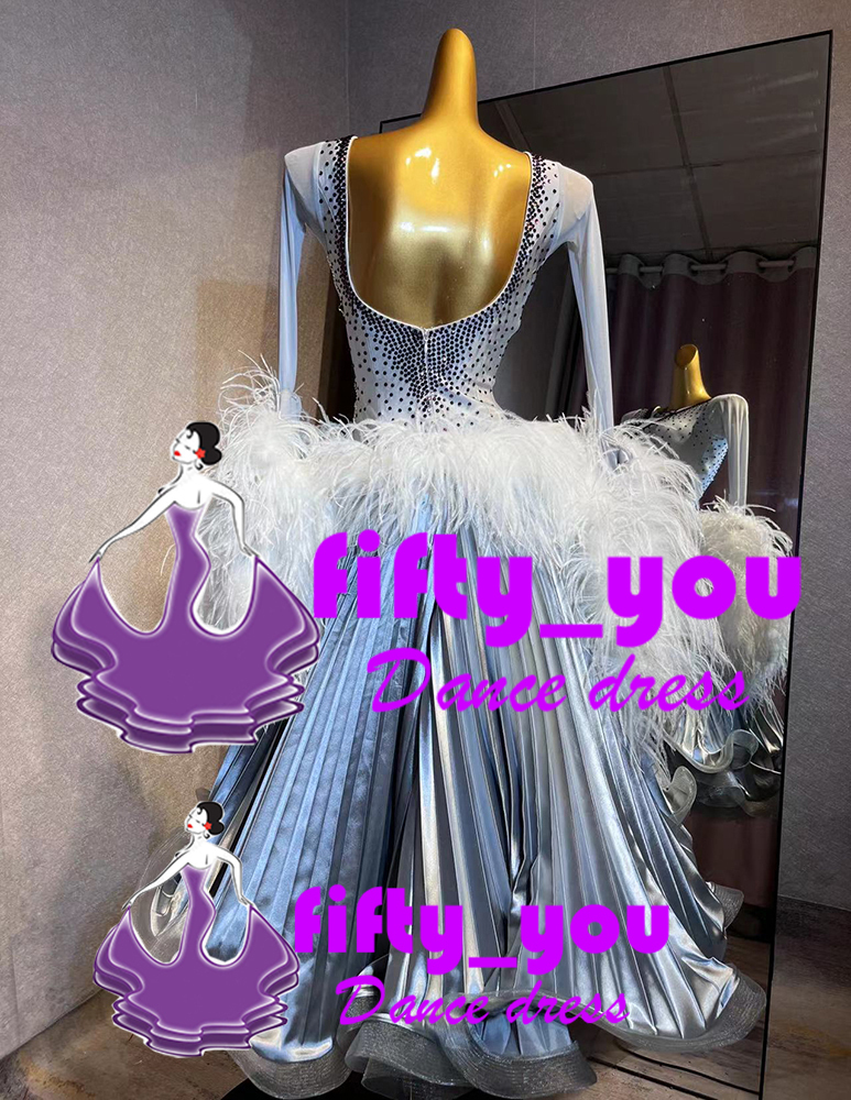 新品fifty_you レディース社交ダンスドレス  モダン競技会用ダンスドレス ライトストーン飾り 魅力サイズオーダー ボリュームファー飾