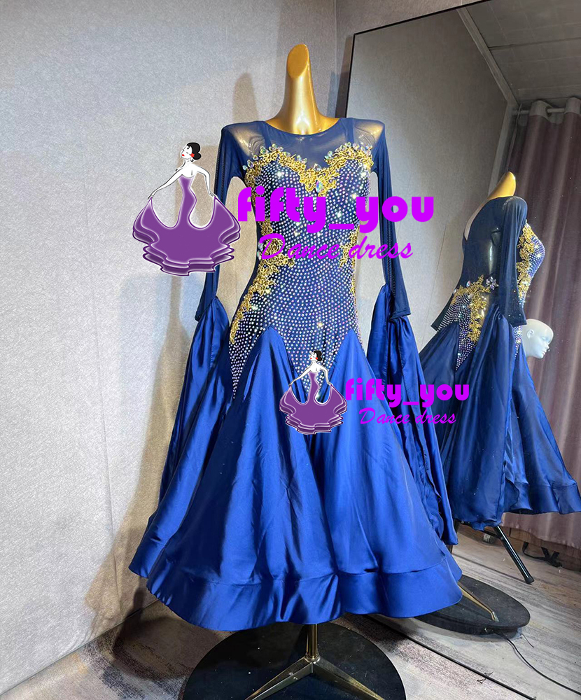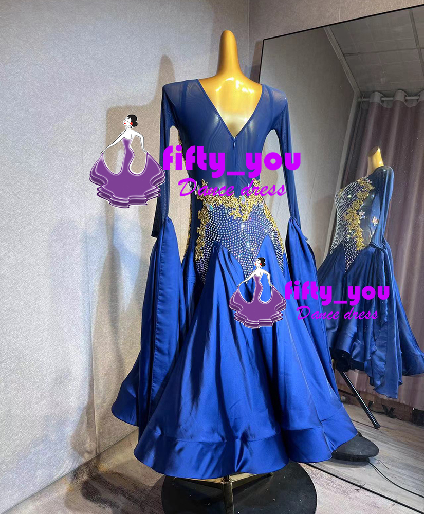 新品fifty_youレディース社交ダンス衣装 ワルツ競技試合デモ用モダンドレス 高品質ドレス サイズオーダー ライトストーン+モチーフ飾