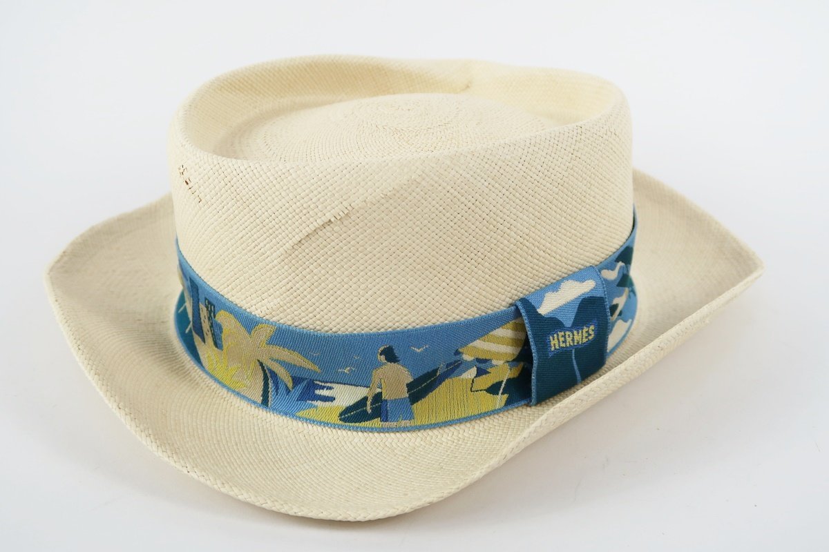 | 【美品】HERMES エルメス ハット ストロー 帽子 57 服飾雑貨 小物【PE58】 |